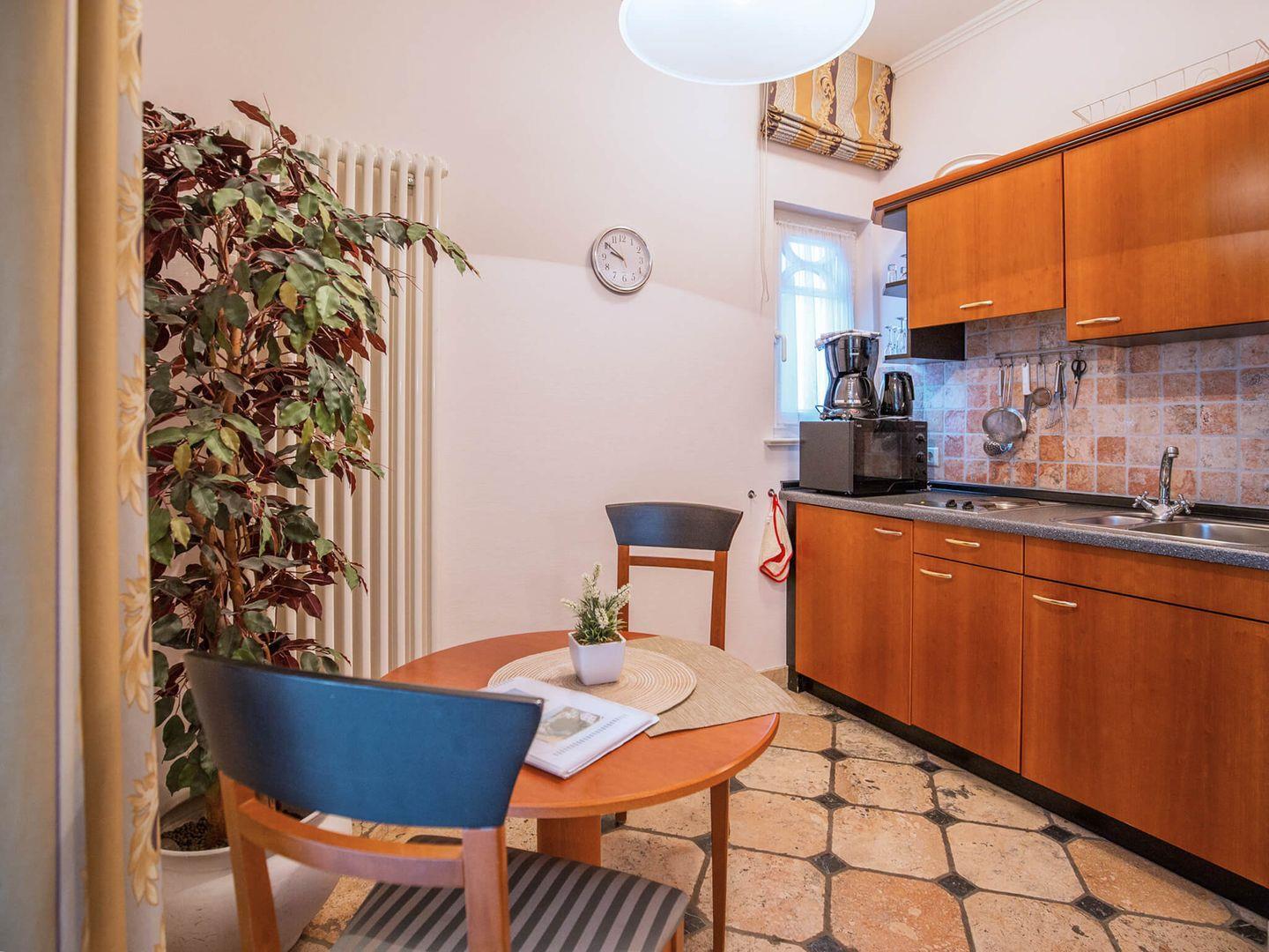 Villa Gudrun; kombinierter Wohn- und Schlafraum mit französischem Bett (1,40), Balkon mit seitlichem Seeblick, Dusche/ WC, eingerichtete Pantry, LCD-Flachbildfernseher, DVD-Player, Stereo-Anlage, kostenfreier WLAN-Anschluss, Haustiere erlaubt und Nichtraucher, maximal 2 Personen Belegung