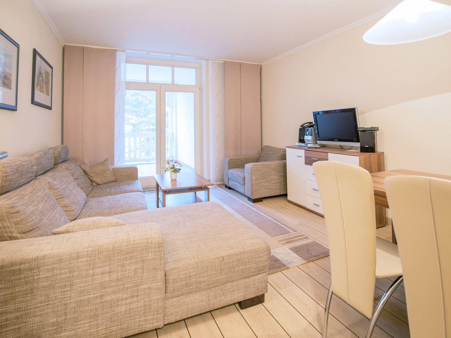 Helle Ferienwohnung mit Balkon und Meerblick im Ostseebad Binz, ideal für erholsame Tage zu zweit.
