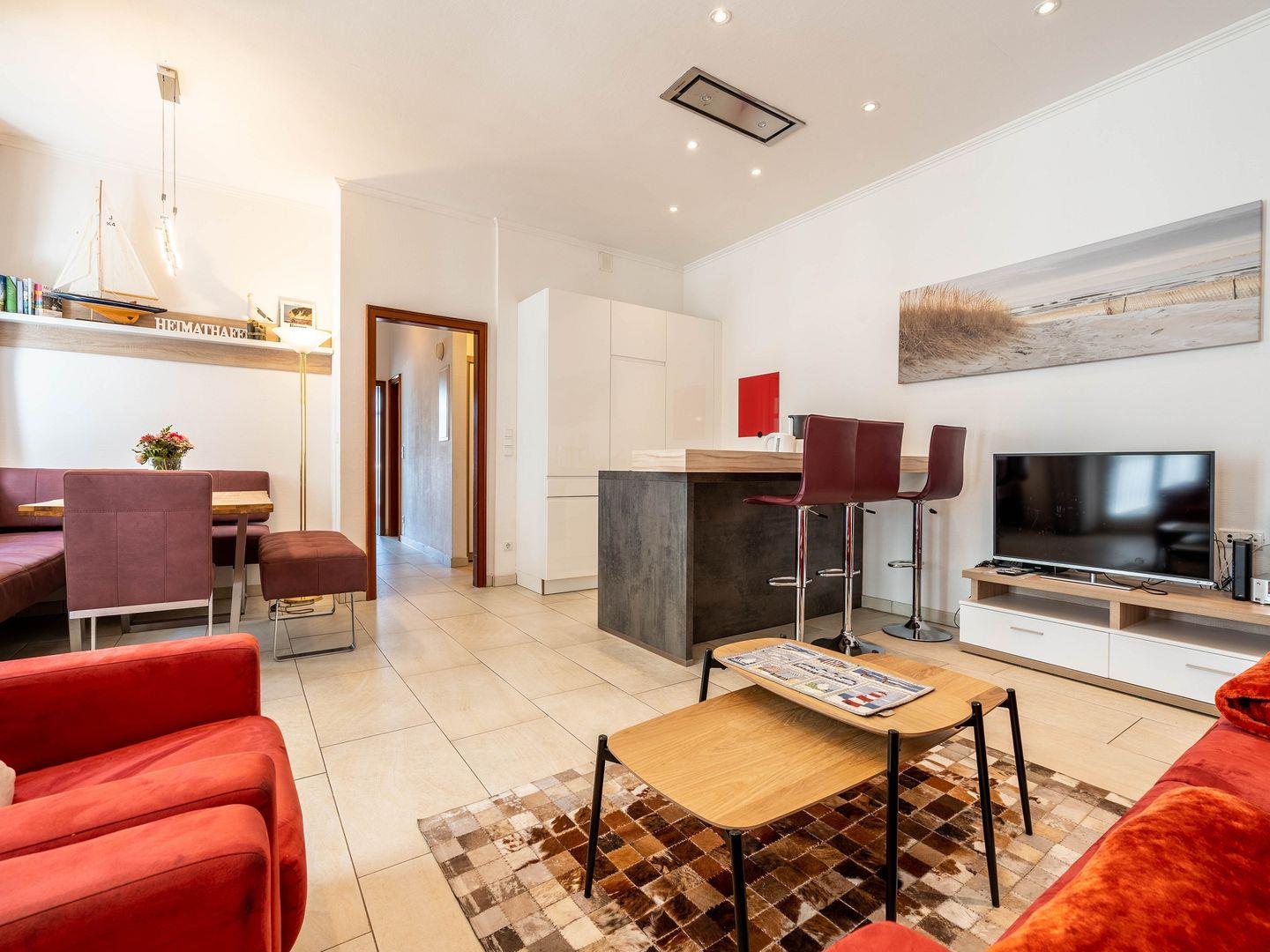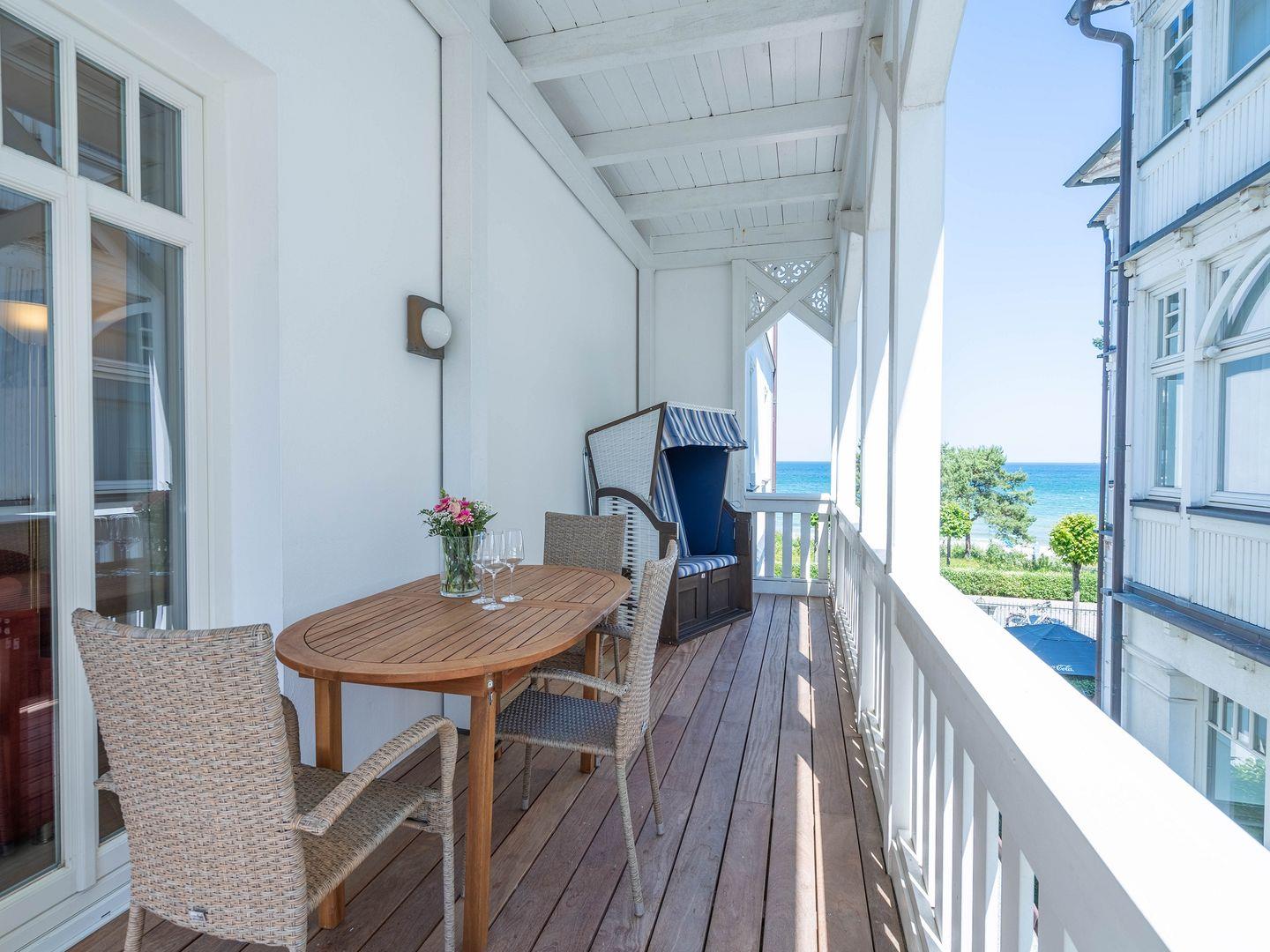 Moderne Ferienwohnung in Binz mit zwei Balkonen, seitlichem Seeblick und vollständiger Küche für erholsame Urlaubstage.