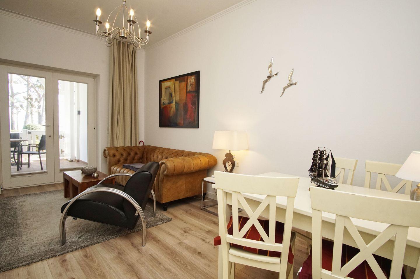 Die Villa Seeadler ist eine 40 m² große Erdgeschosswohnung in unmittelbarer Strandnähe im schönen Ostseebad Binz und bietet für bis zu 2 Personen Platz. Die blau schimmernde Ostsee lässt sich gerade dort von der Terrasse sehr gut betrachten. Die schöne Promenade mit dem anliegenden Strand ist für unsere Besucher dort besonders interessant. Als eine der beliebtesten Sehenswürdigkeiten dort gelten die 370 m lange Seebrücke und das bereits 1906 erbaute Kurhaus Binz, welches gerade mit seinem unverkennbaren roten Dach hervorsticht. Von der Seebrücke aus haben Besucher die Möglichkeit, an den gefragten Schiffsfahrten, die rund um die Kreideküste führen, teilzunehmen. Gleich neben dem Strand auf der Promenade befinden sich viele interessante Einkaufsmöglichkeiten, die für jede Altersgruppe eine große Auswahl bieten. Natürlich kommt die Kulinarik dort ebenfalls nicht zu kurz. Das Ostseebad Binz bietet mit seinen zahlreichen Restaurants, Kaffees und Bars für alle Geschmäcker ein umfangreiches Angebot. Gönnen Sie sich einen entspannten Spaziergang durch das Ostseebad und bewundern Sie die restaurierten und in neuem Glanz erstrahlenden Bädervillen. In der Villa Seeadler offerieren wir einen abwechslungsreichen und erholsamen Urlaub, der für alle Interessen etwas bereithält.