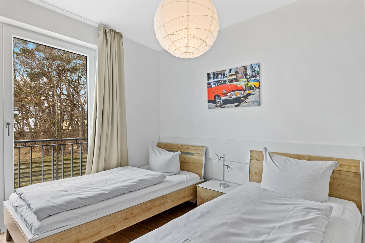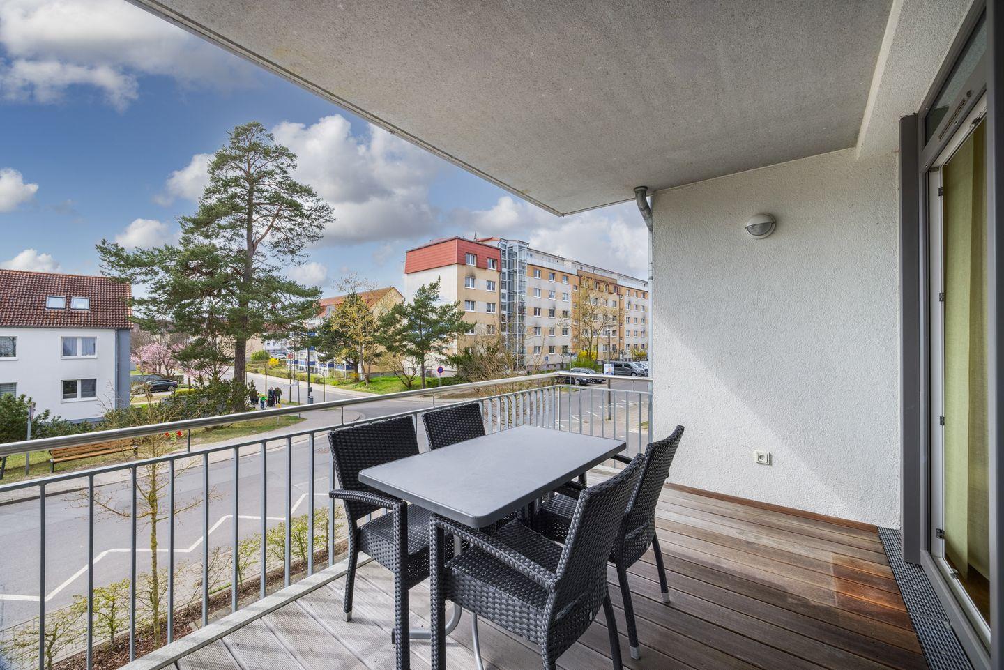 Das Apartment befindet sich im 1. Obergeschoss der Apartmentanlage – in sonniger Südwestlage und nur 150 Meter vom Ostseestrand und der Binzer Seebrücke entfernt.