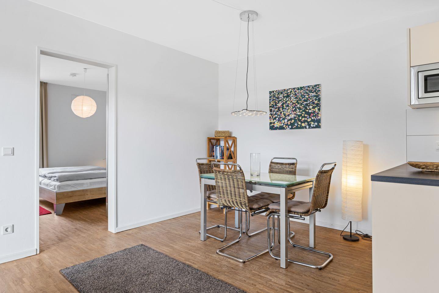 Die Anlage verfügt über einen Fahrstuhl. Überdies steht euch ein Abstellraum für Fahrräder im Innenhof der Anlage zur Verfügung. Zu dieser Wohnung gehört ein kostenpflichtiger Einzelstellplatz in der Tiefgarage, den ihr auf Wunsch hinzubuchen könnt. Der Stellplatz verfügt über eine eigene Wallbox (22 Kilowatt) für euer E-Auto, bei der ihr komfortabel via App laden und mit Kreditkarte, Apple Pay oder Google Pay zahlen könnt.