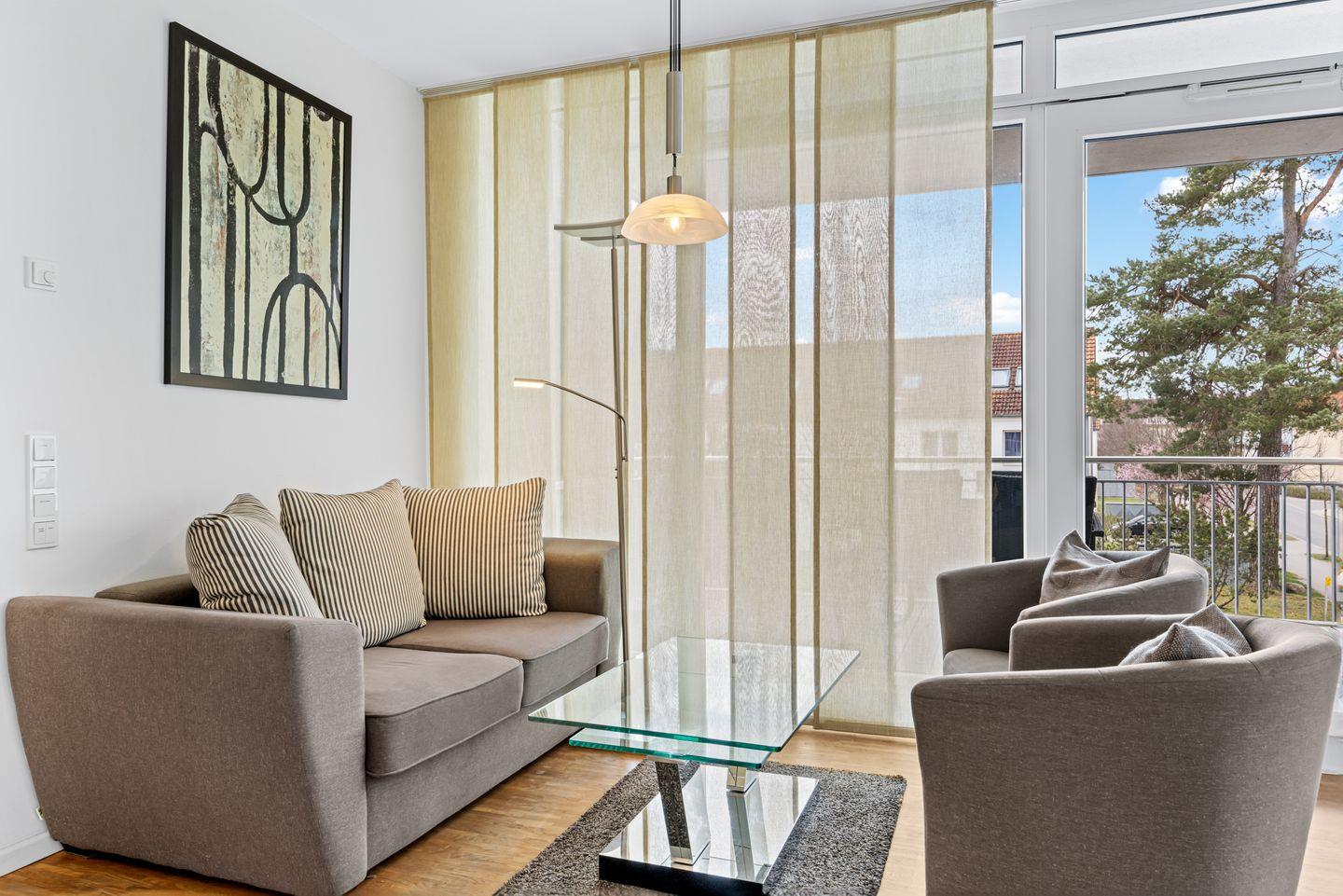 Modernes Apartment mit Balkon und Fußbodenheizung, nur 150 m vom Ostseestrand in Binz entfernt.