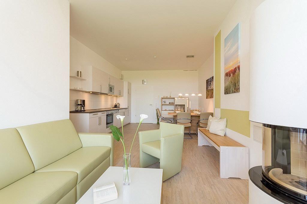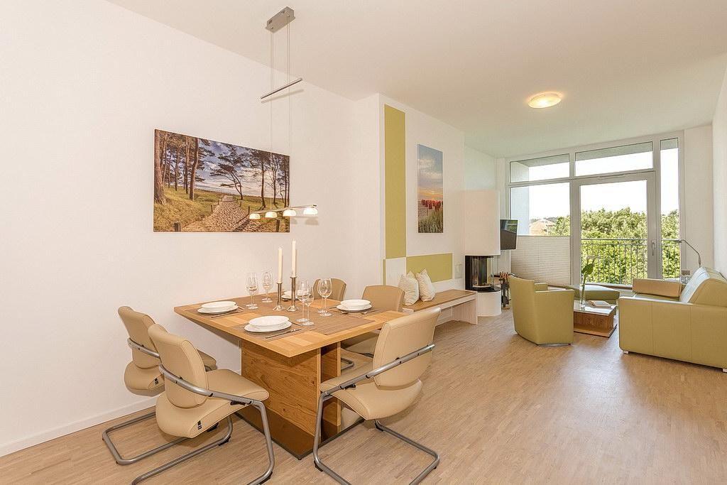 Das 3-Zimmer-Penthause mit 97 qm, Sauna, Fußbodenheizung, Kamin, Dachterrasse und einem Balkon mit Meerblick lädt bis zu 6 Personen zum Wohlfühlen in lichtdurchfluteten Zimmern zu einem schönen Urlaub an der Ostsee ein.
