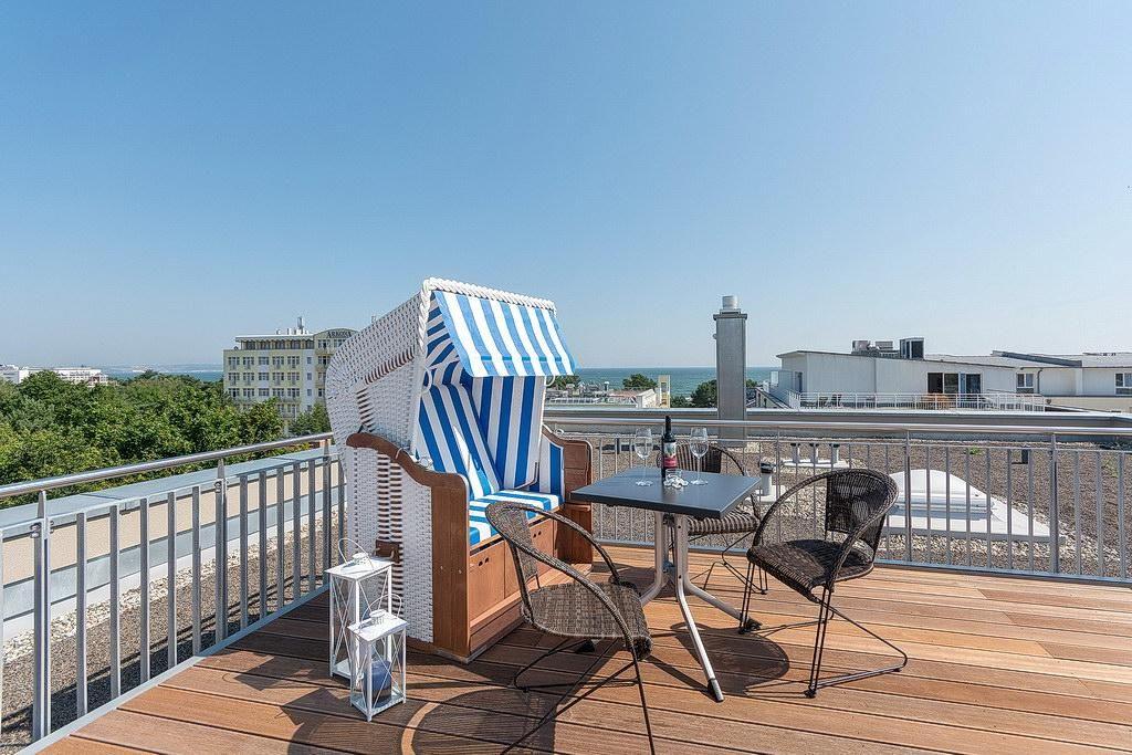Modernes Penthouse in Binz mit Sauna, Kamin, Dachterrasse und herrlichem Meerblick.