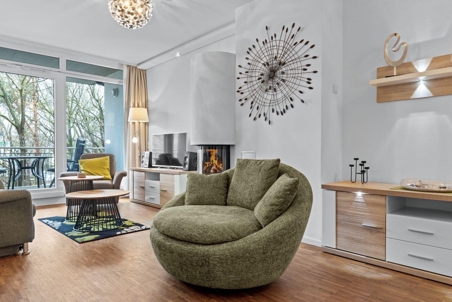 Modernes Ferienapartment mit Balkon, Kaminofen und nur 150 m zum Ostseestrand in Binz.
