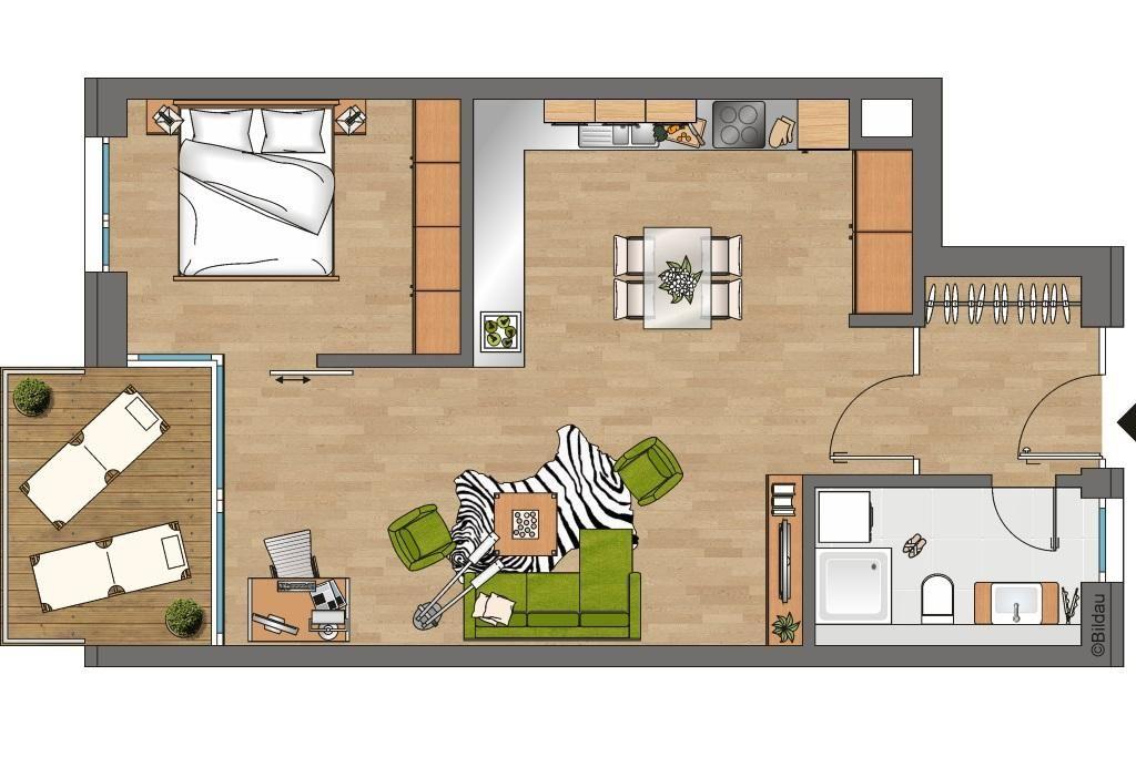 Hochwertige Ferienapartments an der Ostsee findet ihr im 'DünenResort Binz'. Das Apartment mit 2 Zimmern, 68 qm, Balkon, Fußbodenheizung und Kaminofen ist ideal für 4 Personen und vermittelt durch seine offene Raumkonzeption Leichtigkeit und Wohlfühlatmosphäre.