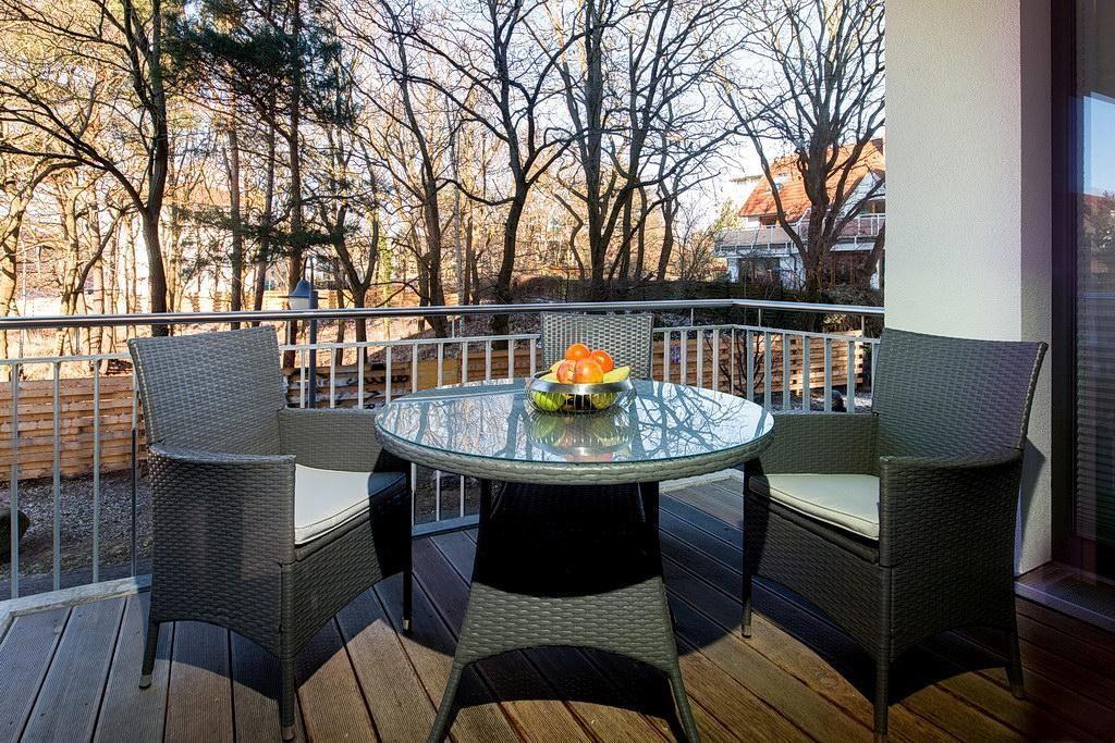 Modernes Apartment mit Kaminofen, Balkon und Fußbodenheizung nahe dem Ostseestrand in Binz.