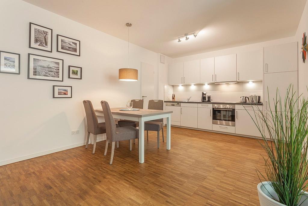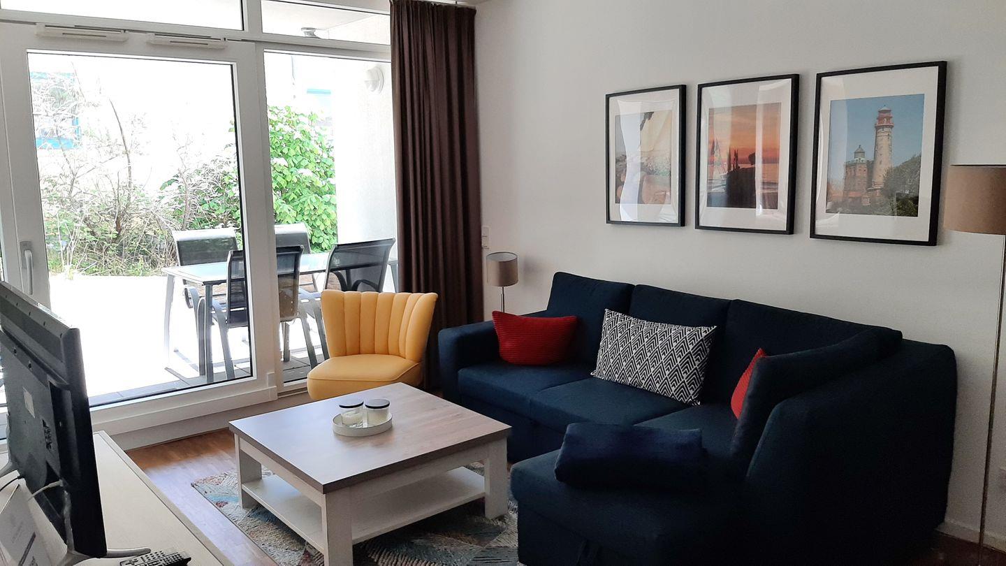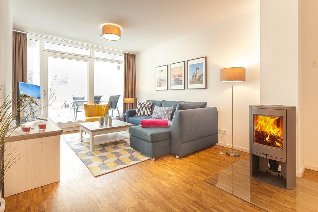 Modernes Apartment mit Kamin, Fußbodenheizung und Südterrasse, nur 150 Meter vom Ostseestrand entfernt.