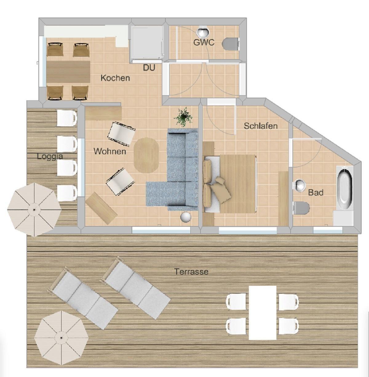 Jedes der acht anspruchsvoll möblierten 4-Sterne Ferienwohnungen verfügt über mindestens ein separates Schlafzimmer, eine hochwertige Küche, ein komfortables Duschbad, eine Loggia, Balkon oder Terrasse (teilweise sogar mit Meerblick!) sowie über einen Garagenstellplatz ( gegen eine Gebühr ). Die ideale Ferienwohnung für zwei Personen.
