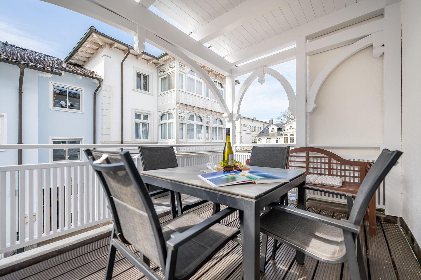 Charmantes 2-Zimmer-Apartment mit Balkon nahe Strandpromenade in Binz, ideal für entspannte Tage an der Ostsee.