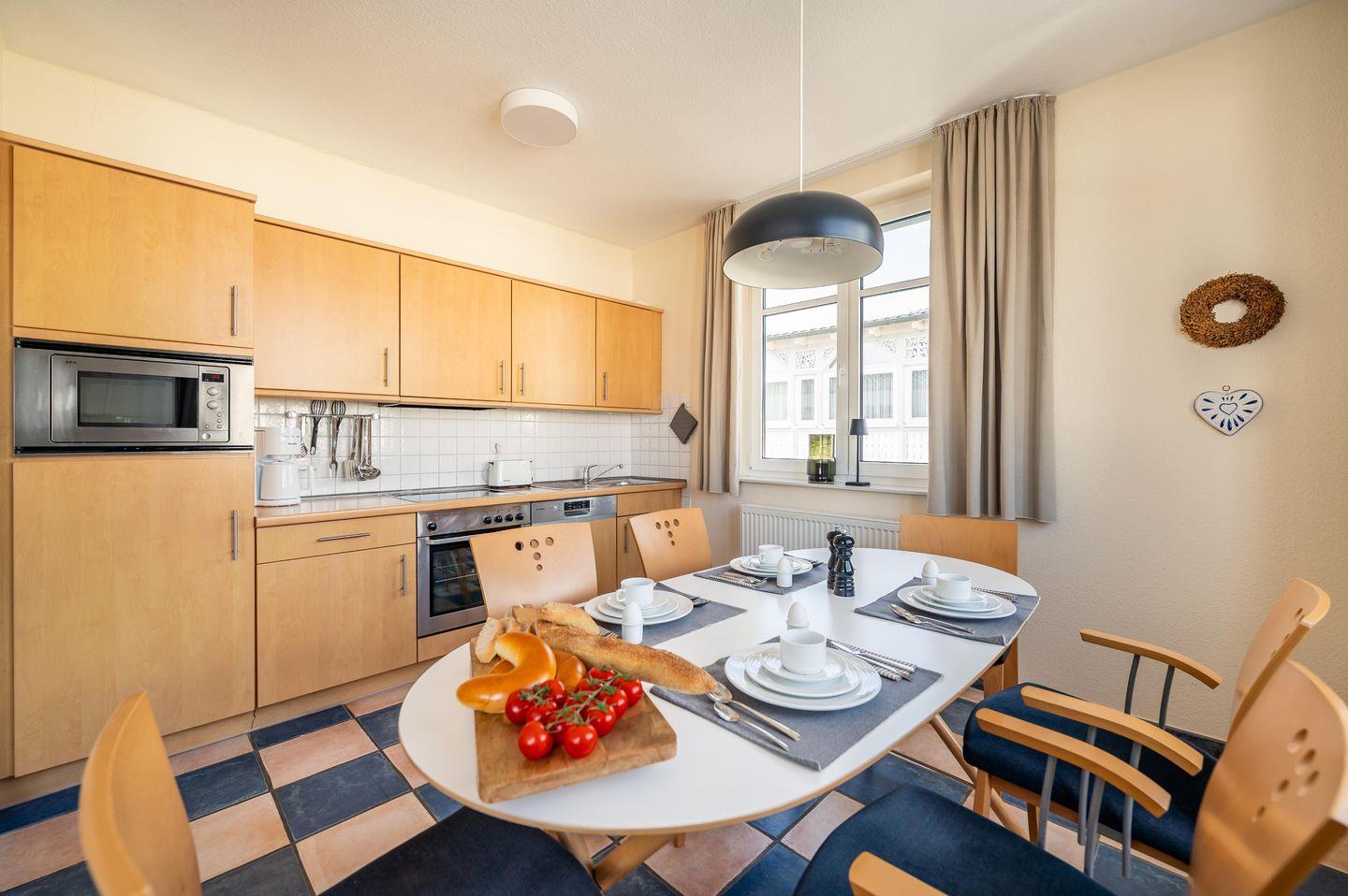 Jedes der acht anspruchsvoll möblierten 4-Sterne Ferienwohnungen verfügt über mindestens ein separates Schlafzimmer, eine hochwertige Küche, ein komfortables Duschbad, eine Loggia, Balkon oder Terrasse (teilweise sogar mit Meerblick!) sowie über einen Garagenstellplatz ( gegen eine Gebühr). Die ideale Ferienwohnung für zwei bis vier Personen.