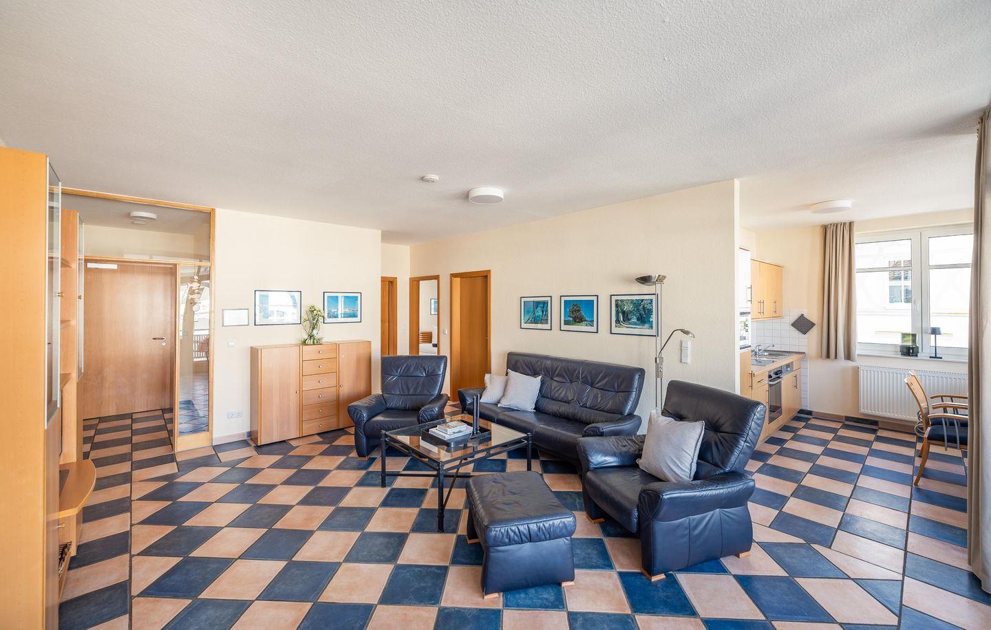 Jedes der acht anspruchsvoll möblierten 4-Sterne Ferienwohnungen verfügt über mindestens ein separates Schlafzimmer, eine hochwertige Küche, ein komfortables Duschbad, eine Loggia, Balkon oder Terrasse (teilweise sogar mit Meerblick!) sowie über einen Garagenstellplatz ( gegen eine Gebühr ). Die ideale Ferienwohnung für zwei bis vier Personen.
