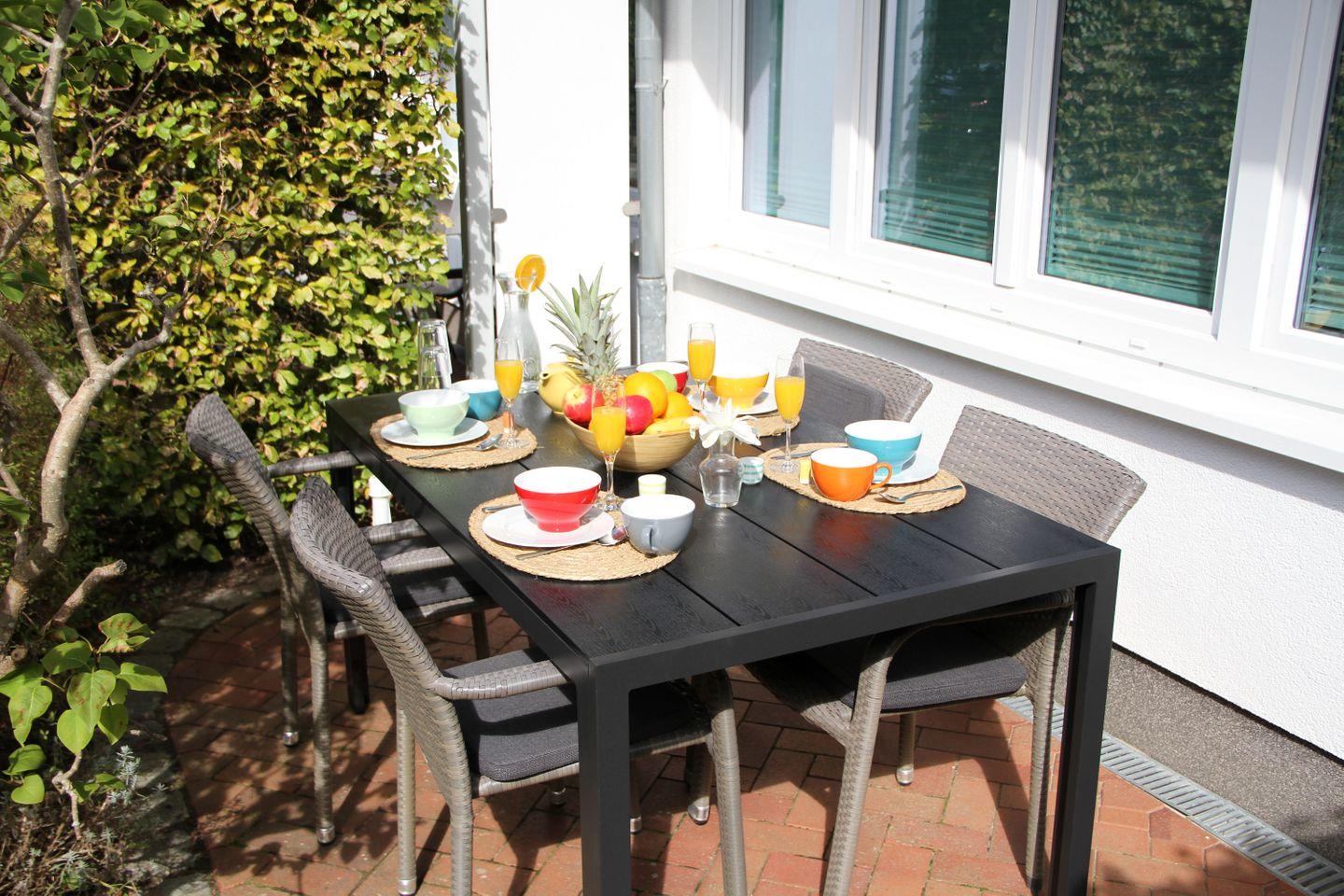 Charmante Ferienwohnung in Binz, nur 100 m vom Strand entfernt, mit Terrasse und kostenfreiem WLAN.