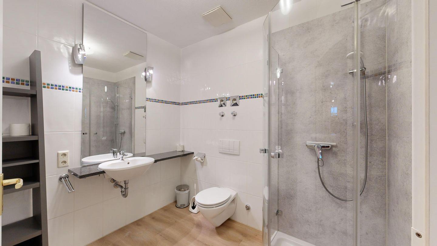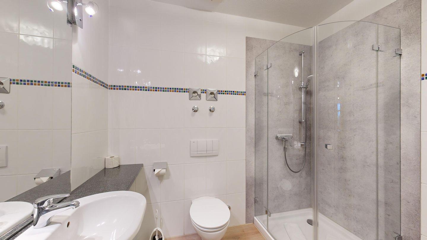 * 1 Badezimmer mit Dusche, WC und Föhn