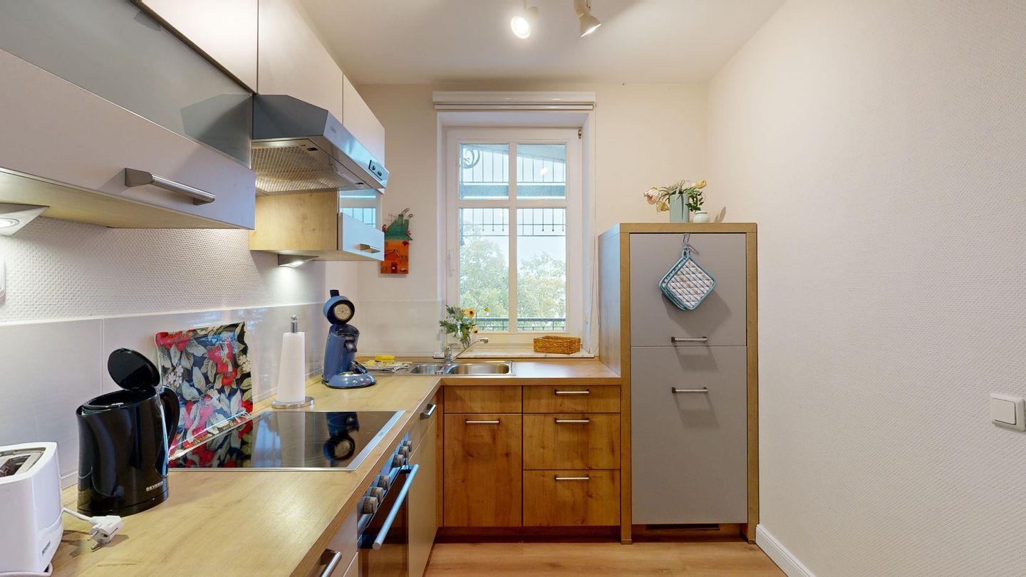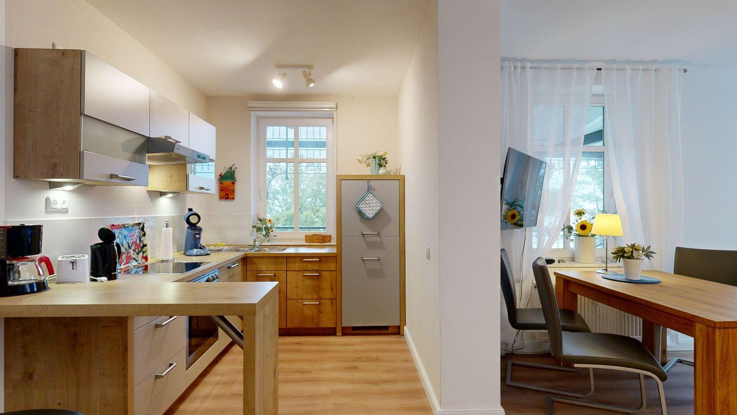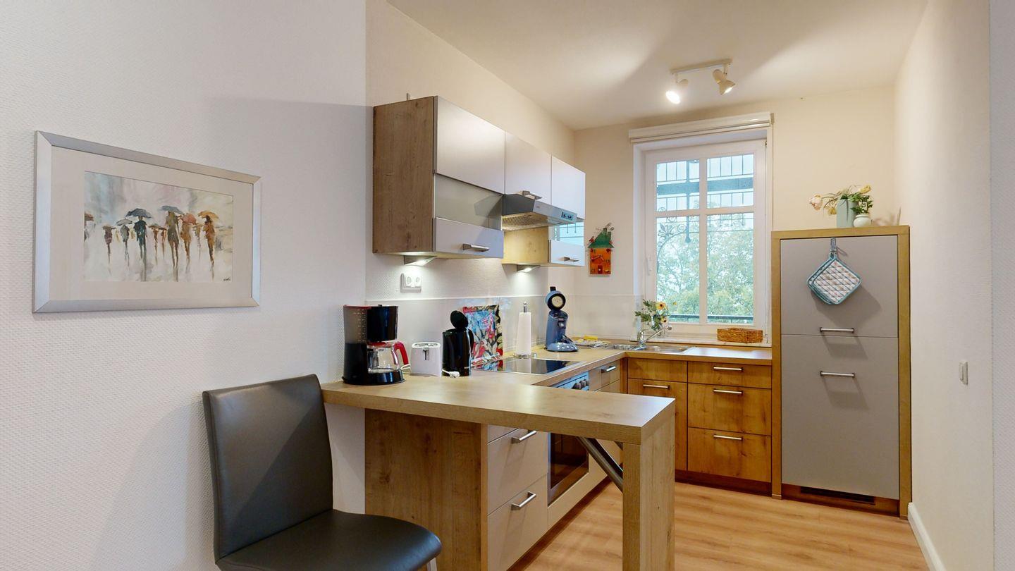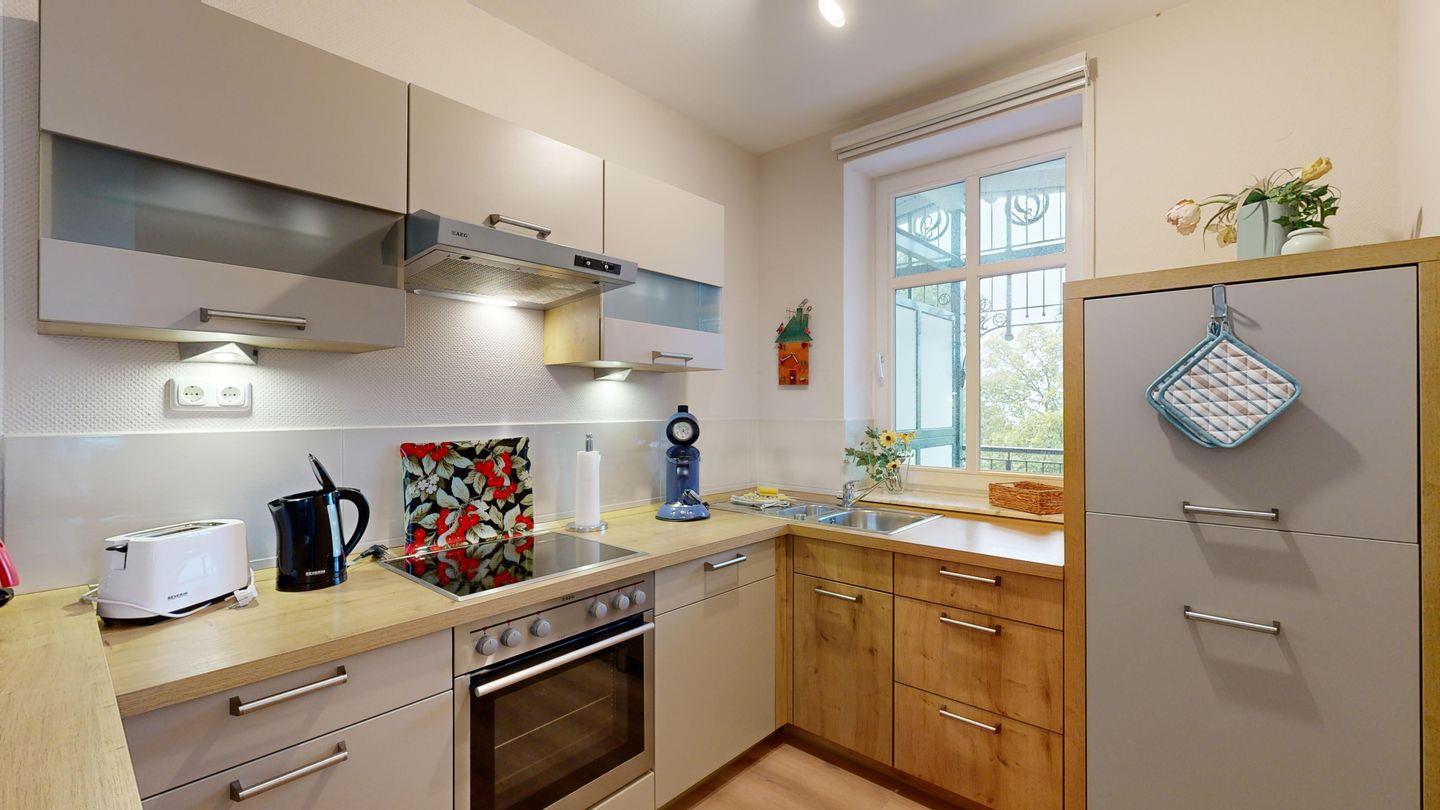 * Küche: Moderne Küchenzeile, Ceran-Herd mit Backofen, Spülmaschine, Wasserkocher, Kaffeemaschine, Toaster