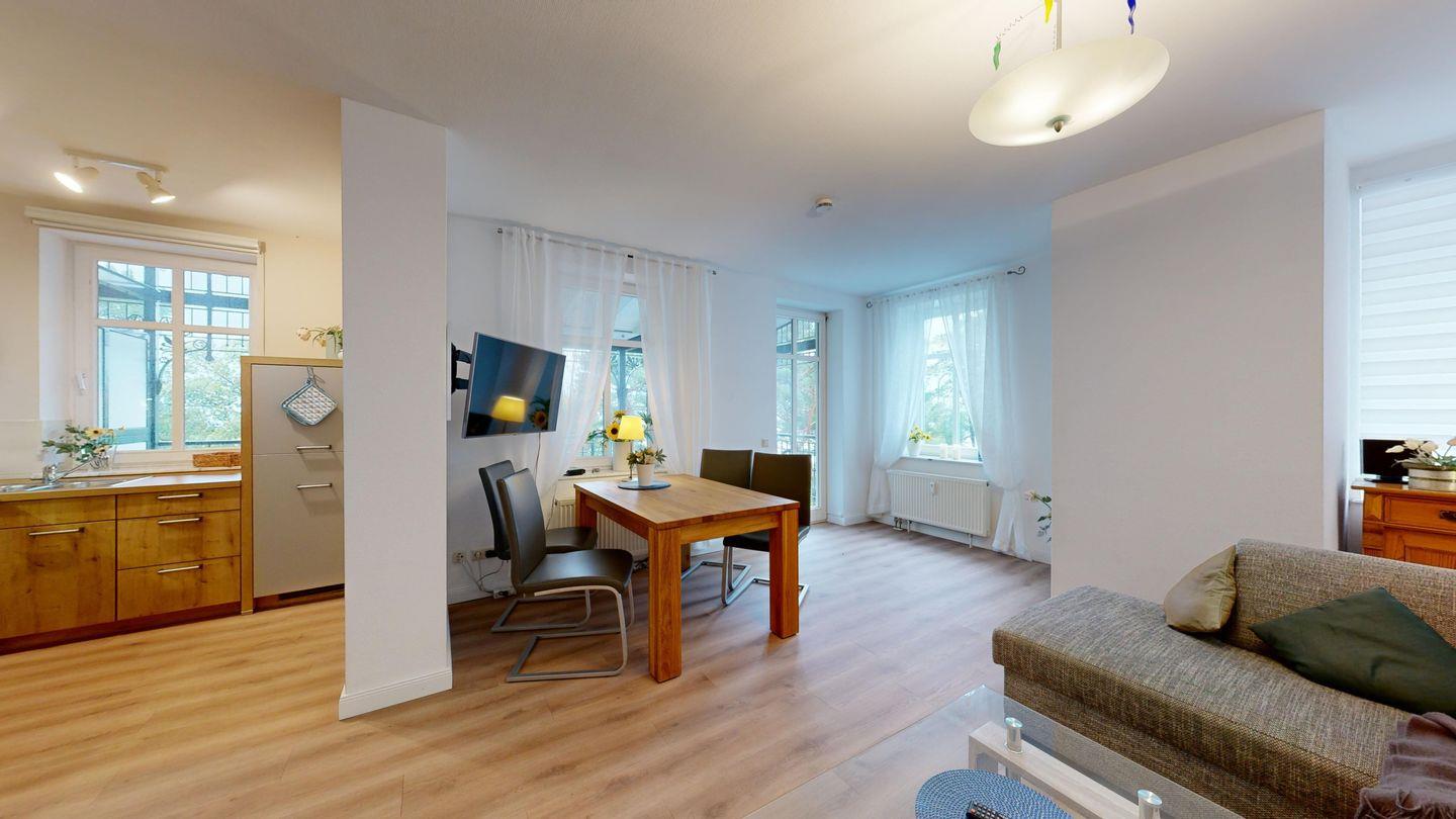 Eine unserer beliebtesten Ferienwohnungen an der Strandpromenade – modern ausgestattet und ideal für erholsame Urlaubstage. Vom Balkon genießen Sie einen unvergleichlichen Blick auf die Ostsee, die Seebrücke und die berühmten Kreidefelsen. Die zentrale Lage verbindet maritimes Flair mit kurzen Wegen zu Strand, Promenade und Ortszentrum.