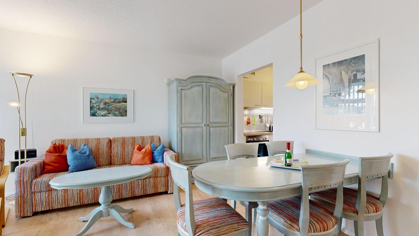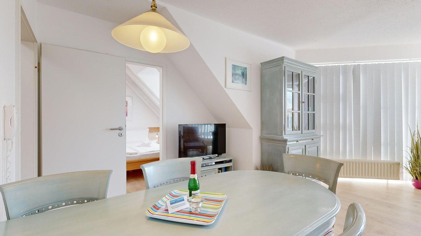 Strandnah und mit seitlichem Meerblick: Diese Ferienwohnung bietet Ihnen nicht nur erholsame Tage am Meer, sondern auch einen eigenen Parkplatz direkt am Haus – praktisch und komfortabel zugleich.