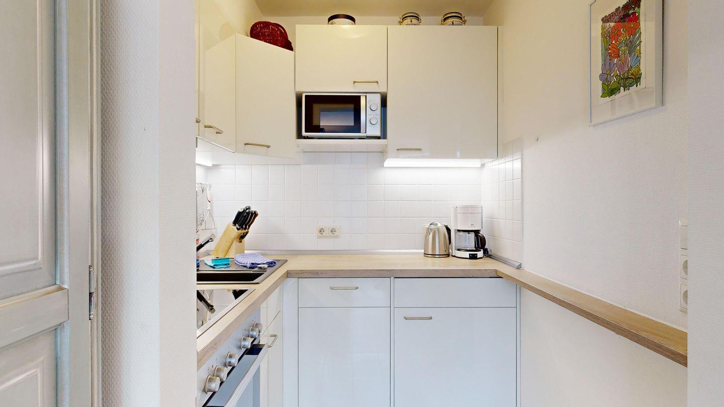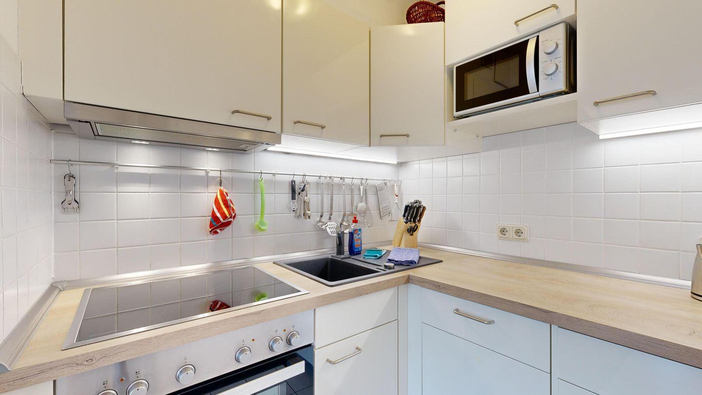 * Küche: Moderne Küchenzeile, E-Herd mit Backofen, Spülmaschine, Mikrowelle, Wasserkocher, Kaffeemaschine, Toaster
