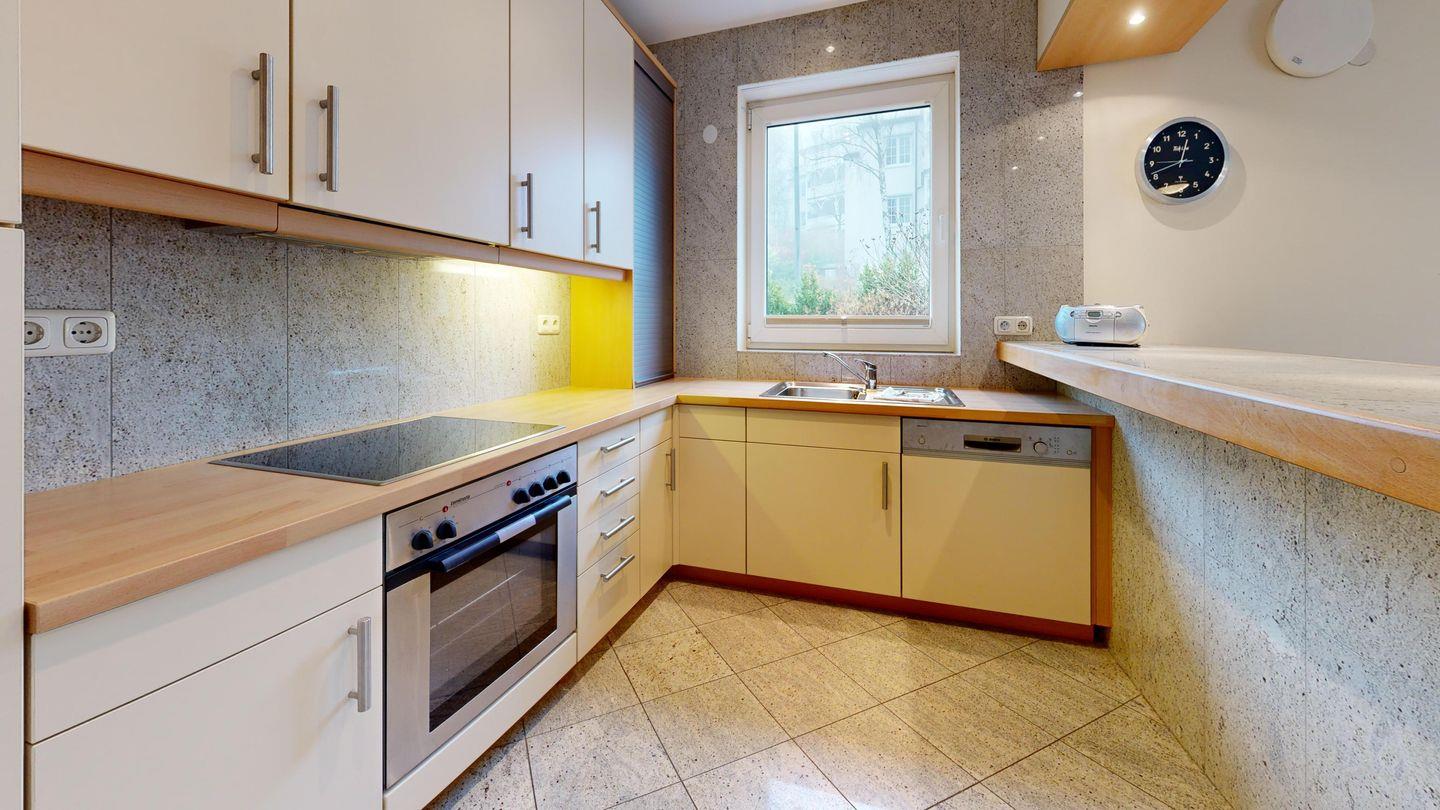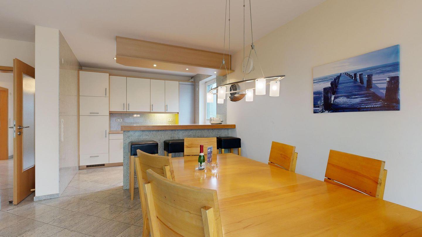 * Küche: Thekenartig abgetrennter Küchenbereich mit modernster Ausstattung: Spülmaschine, Ceranfeld, Mikrowelle, Backofen, Wasserkocher, Toaster und Kaffeemaschine