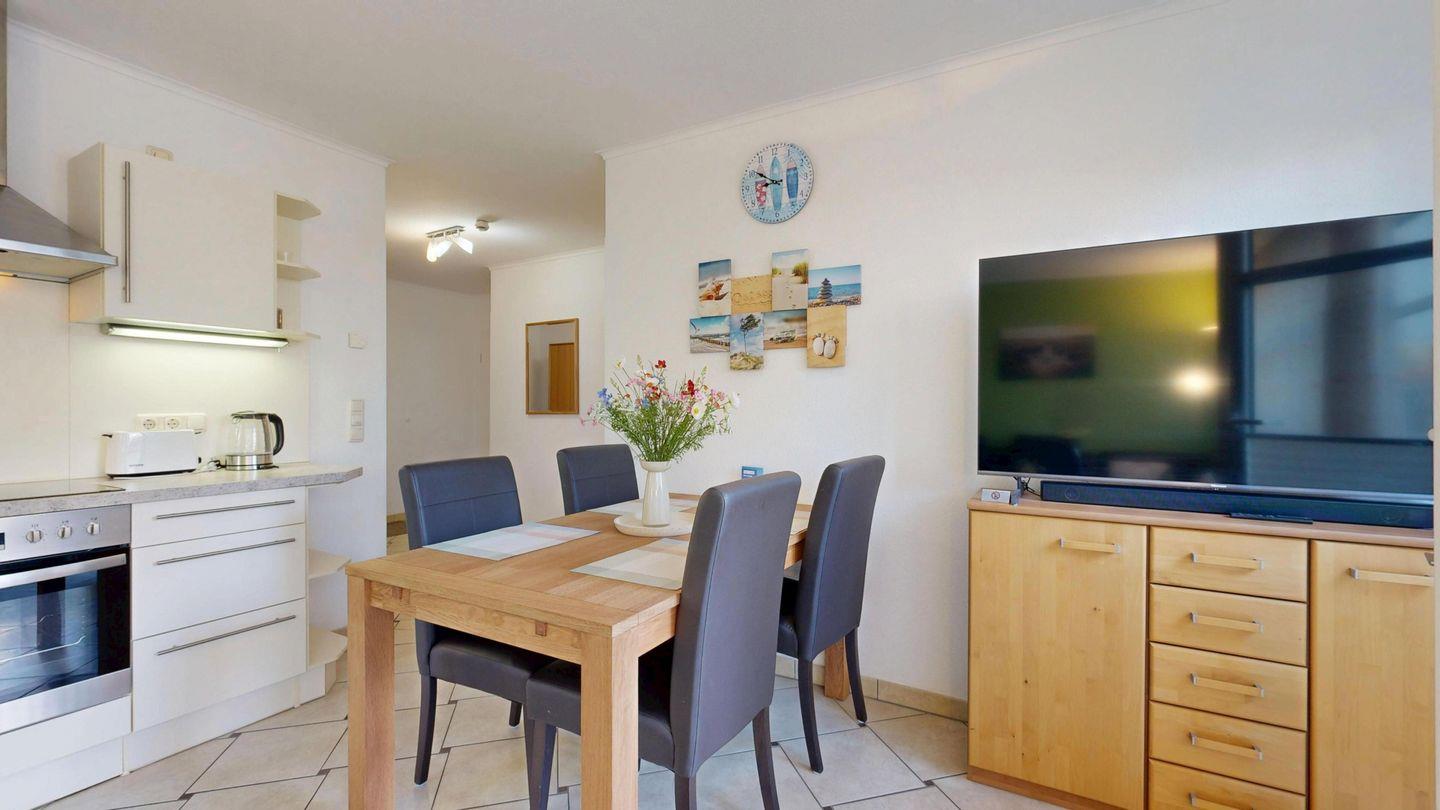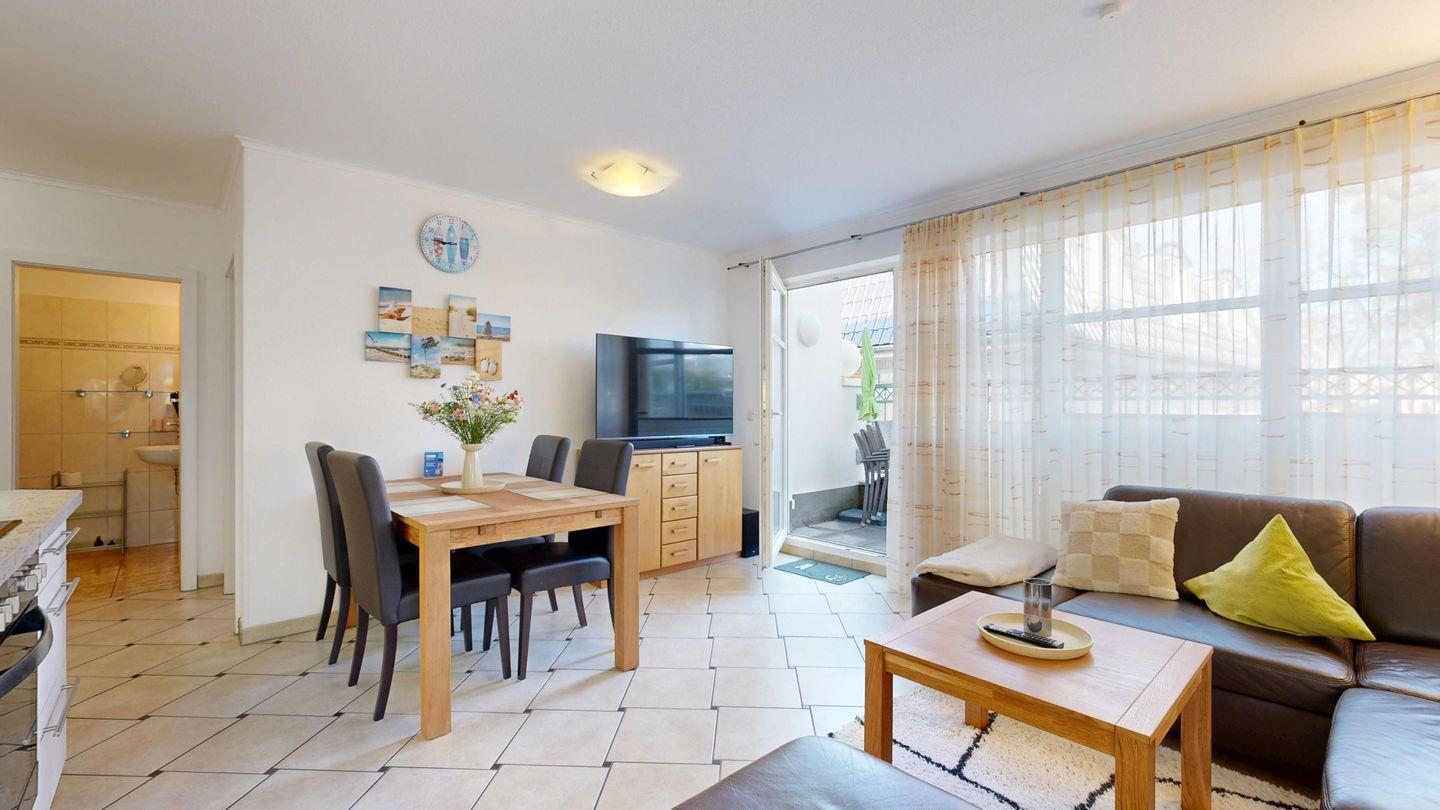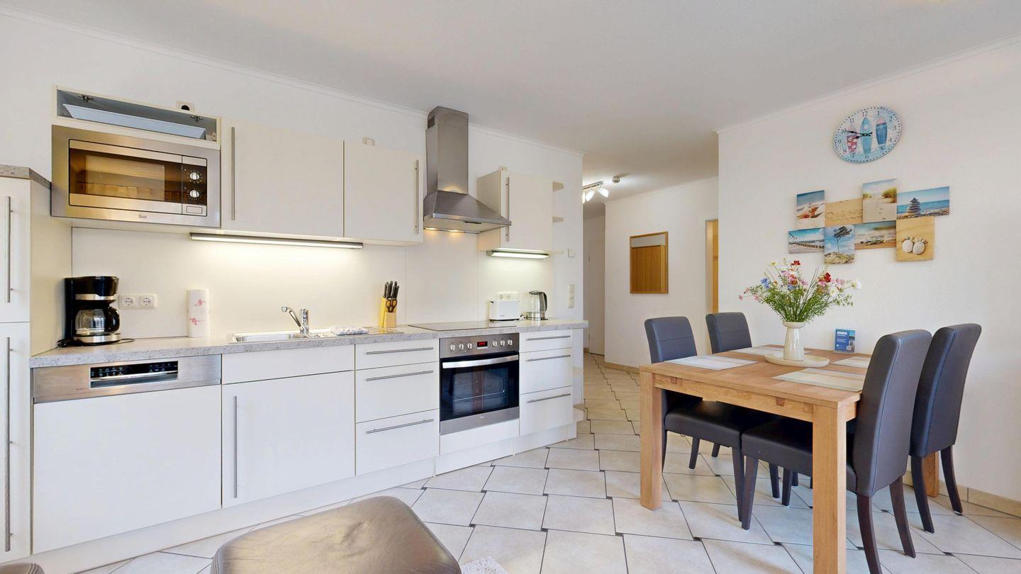 Komfort in bester Lage: Entspannen Sie in der hauseigenen Sauna, parken Sie bequem in der Tiefgarage und genießen Sie Ihren eigenen Strandkorb direkt am Strand. Die großzügige Wohnung verfügt über zwei Schlafzimmer. Hier wird jeder Urlaubstag zum kleinen Highlight.