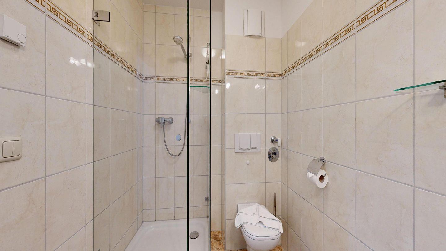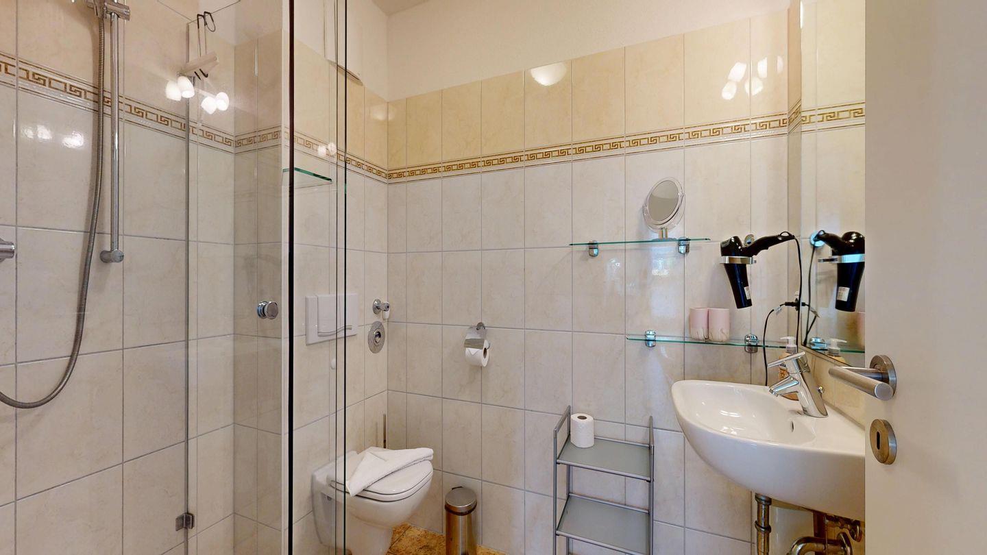 * 1 Badezimmer mit Dusche, WC und Föhn