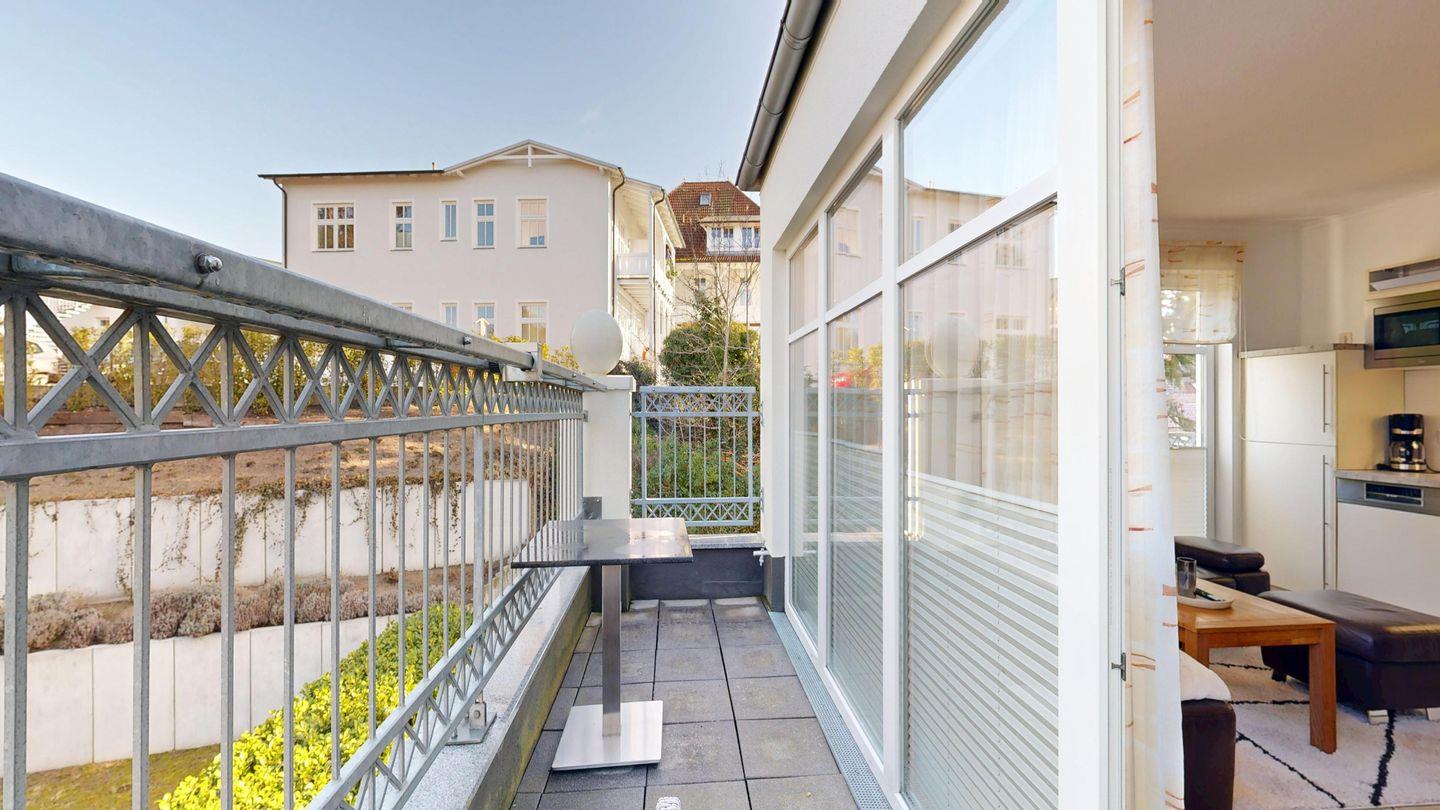 * möblierter Balkon
