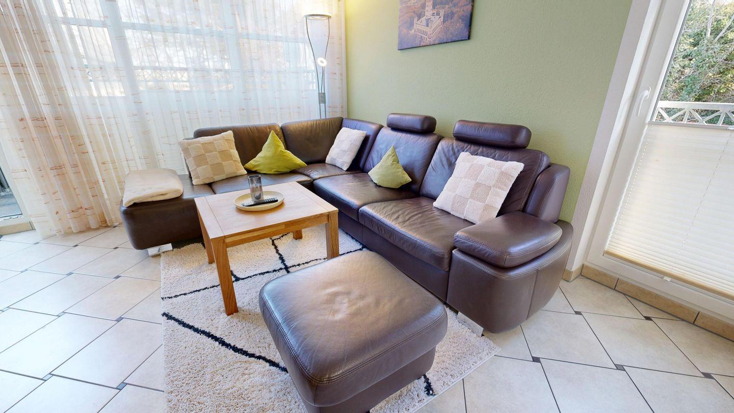 * Wohnzimmer: Ledereckcouch, SAT-TV, Radio mit CD, WLAN und Esstisch