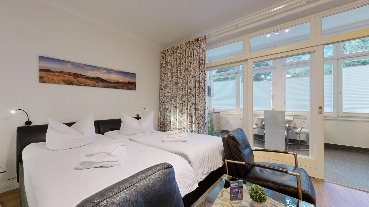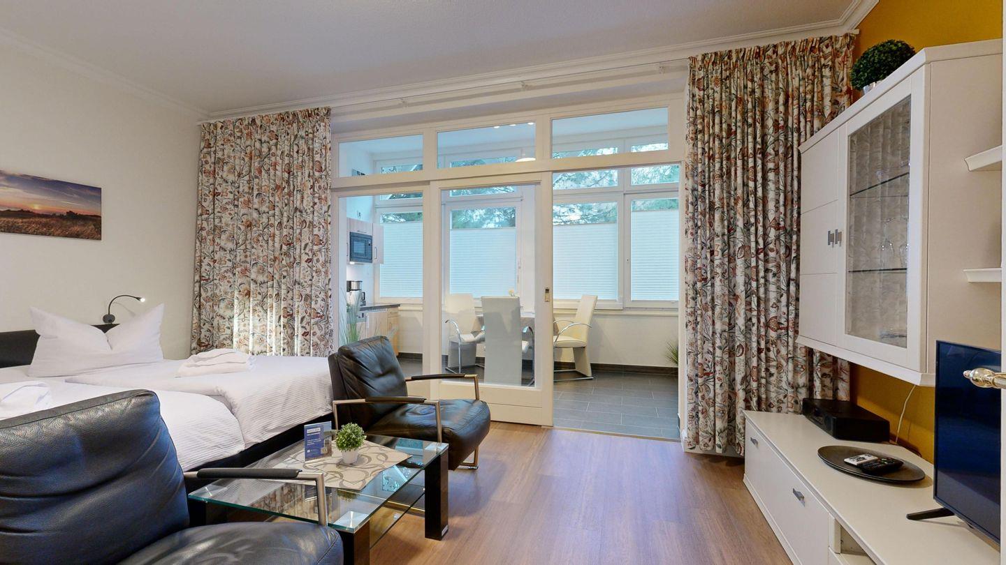 Nur wenige Schritte vom feinen Sandstrand entfernt! Hier erwartet Sie eine stilvolle Ferienwohnung mit einem kombinierten Wohn-/Schlafraum für 1-2 Personen in einer wunderschönen Bäderarchitektur-Villa. In der Badesaison steht Ihnen ein Strandkorb direkt am Meer zur Verfügung – ideal für entspannte Stunden.