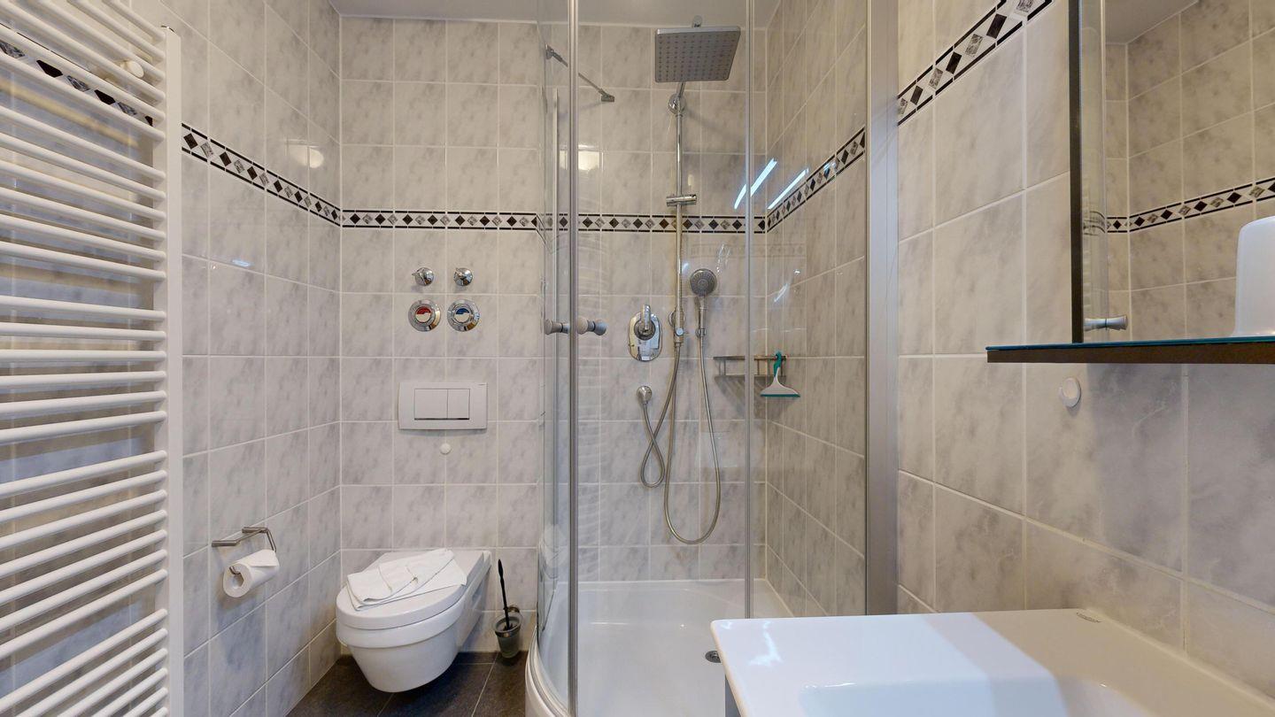 * 1 Badezimmer mit Dusche, WC und Föhn