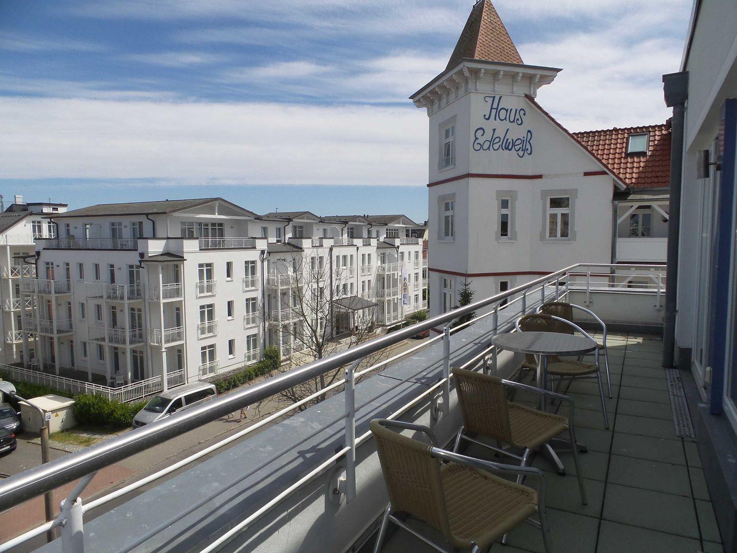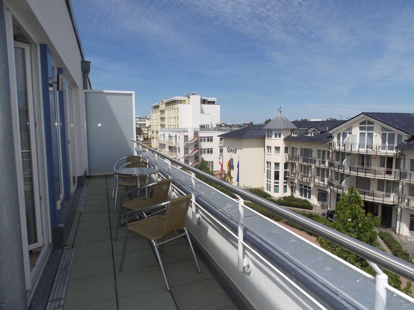 * Möblierter Balkon mit eingeschränktem Ostseeblick