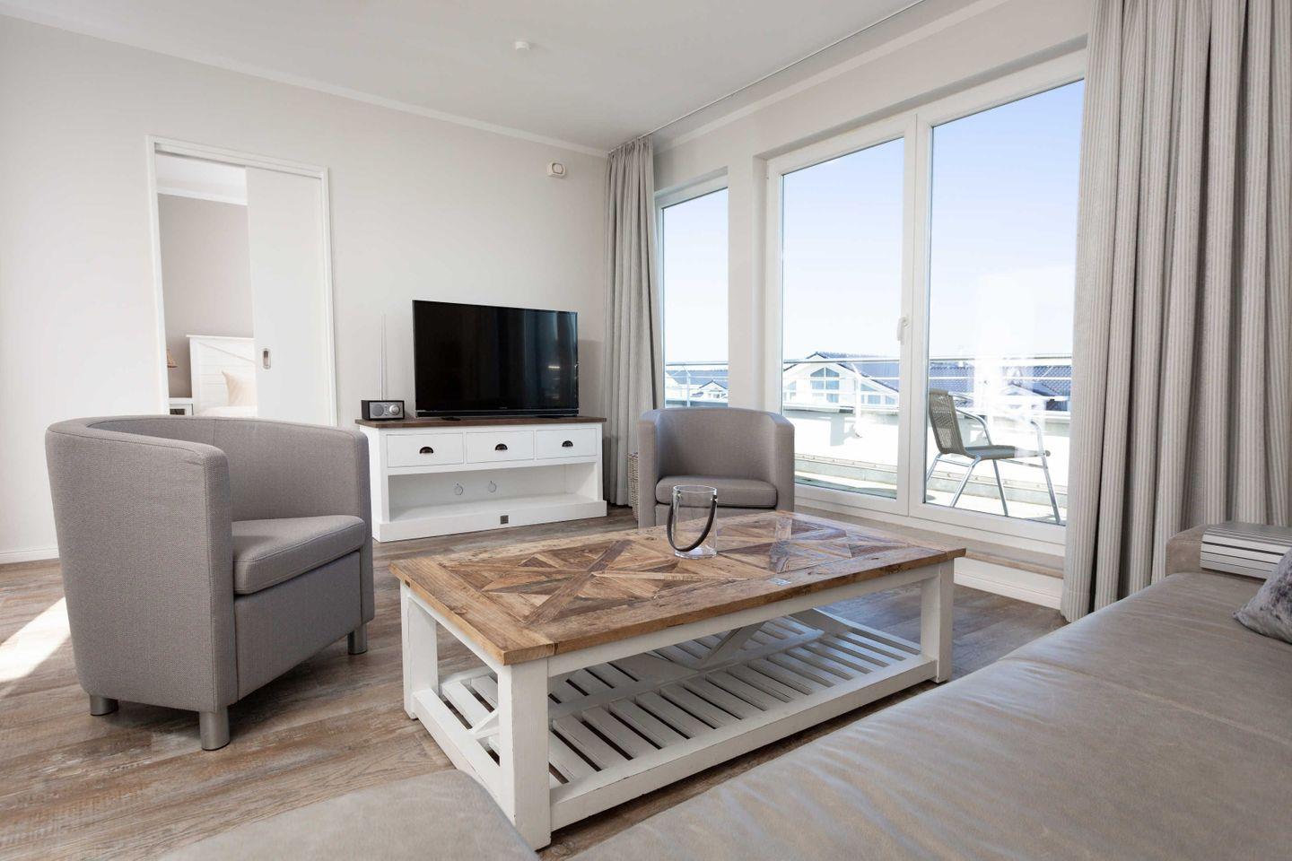 Ferienwohnung mit hochwertiger Möblierung, Meerblick und Balkon für 2-4 Personen mit 1 Schlafzimmer im 3. OG (2 Zimmer / 57 m²):