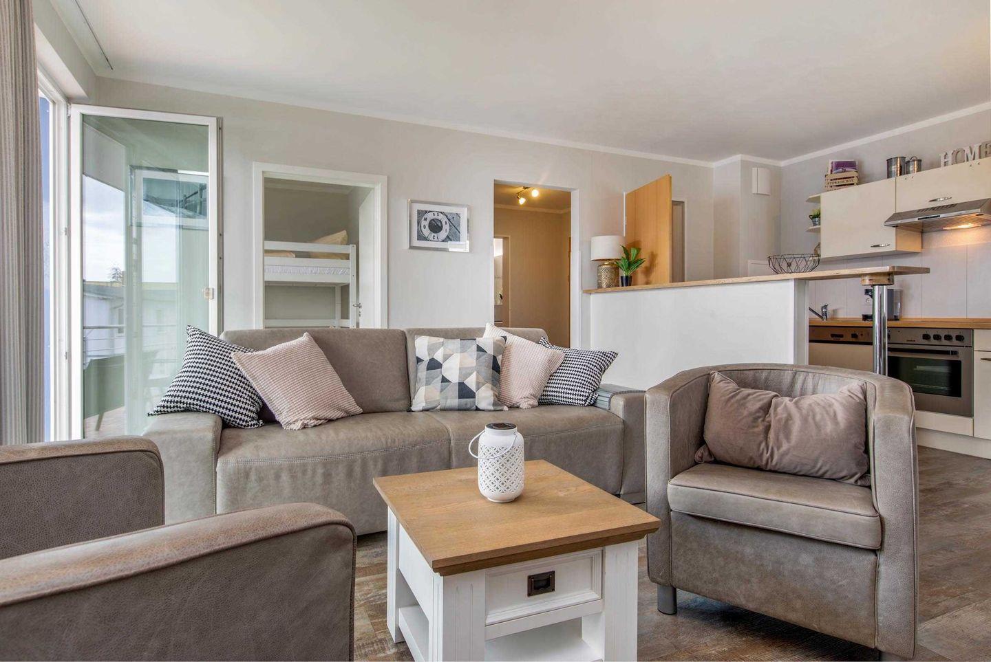 Moderne Ferienwohnung in Binz mit Sauna, Fitnessraum, Balkon und Strandnähe für entspannte Urlaubstage.