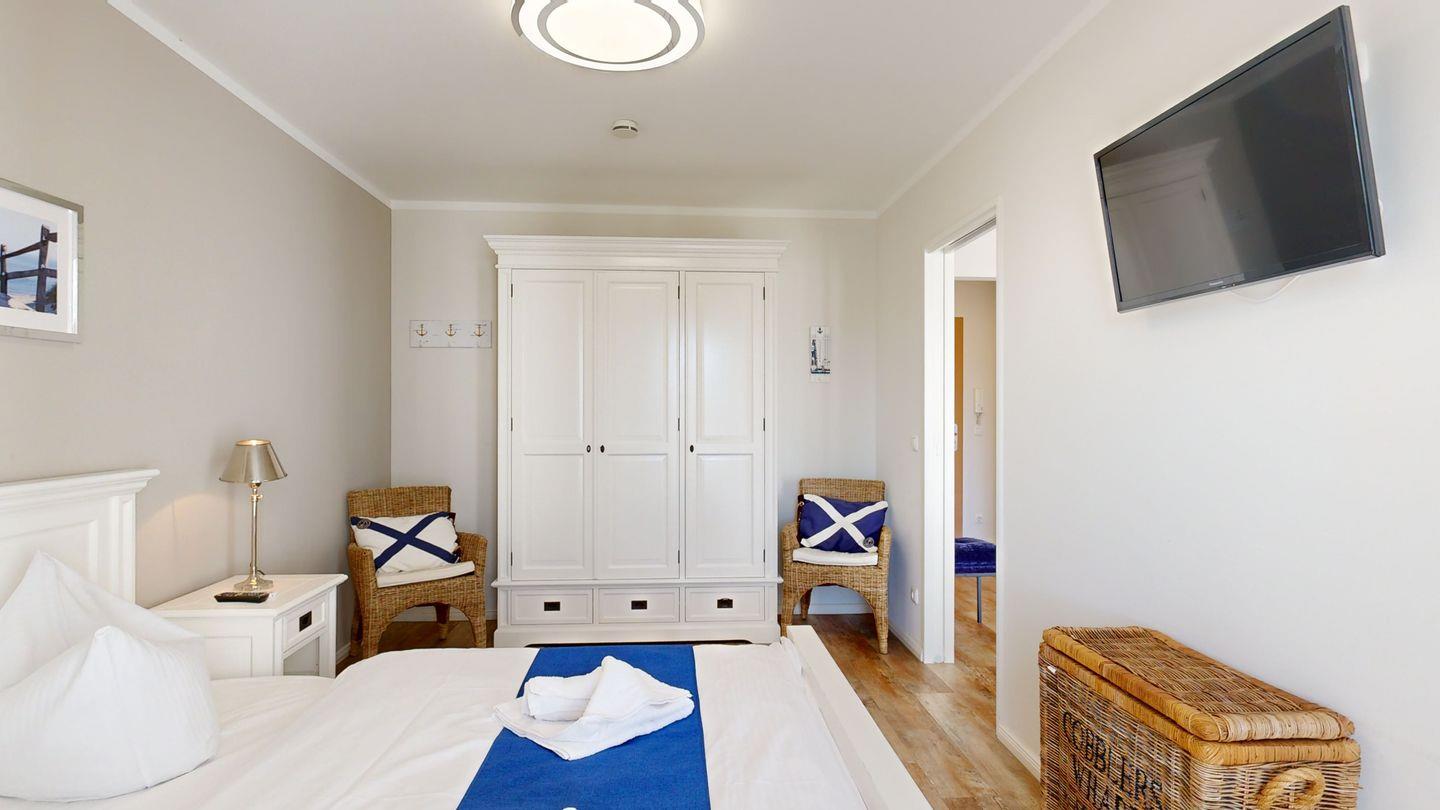 * 1 Schlafzimmer mit einem Doppelbett, Kleiderschrank, TV