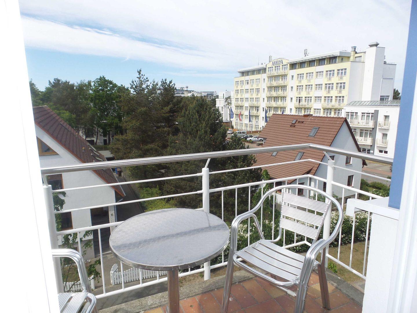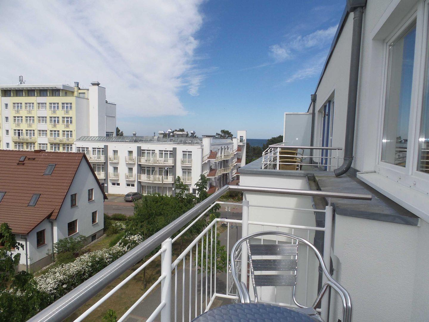 * Balkon mit Balkonmöbeln und eingeschränktem Ostseeblick (Nordwest-Ausrichtung)