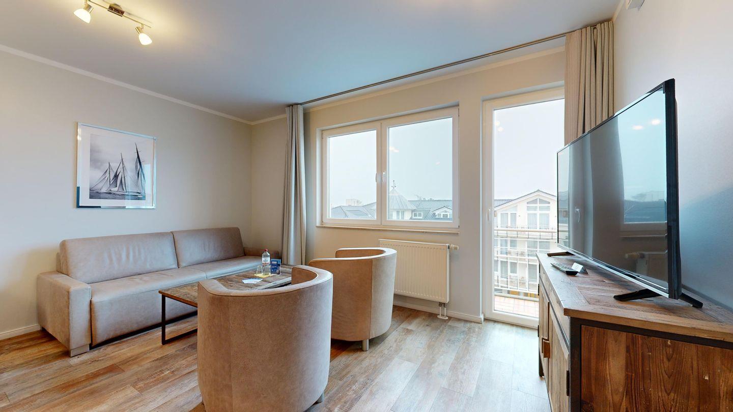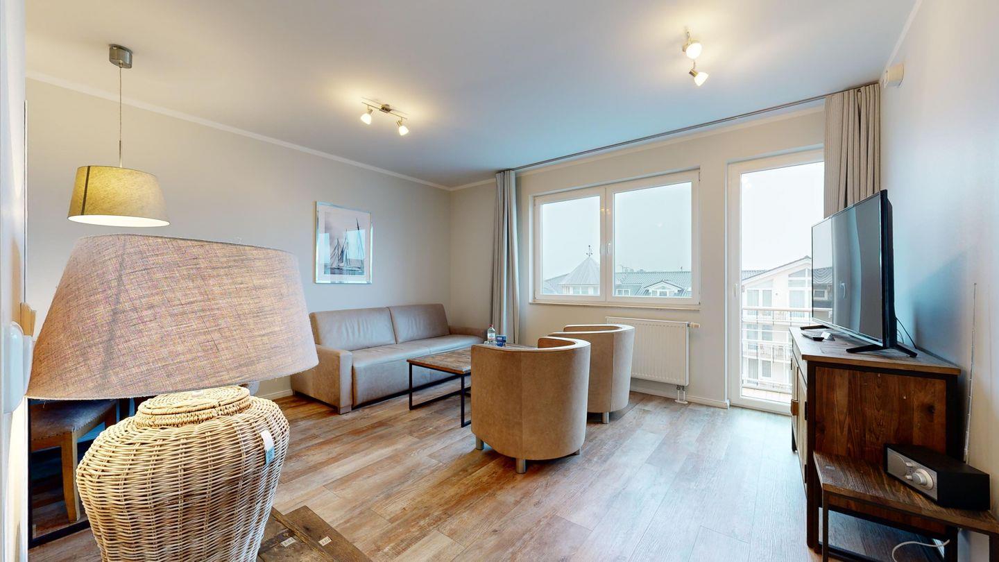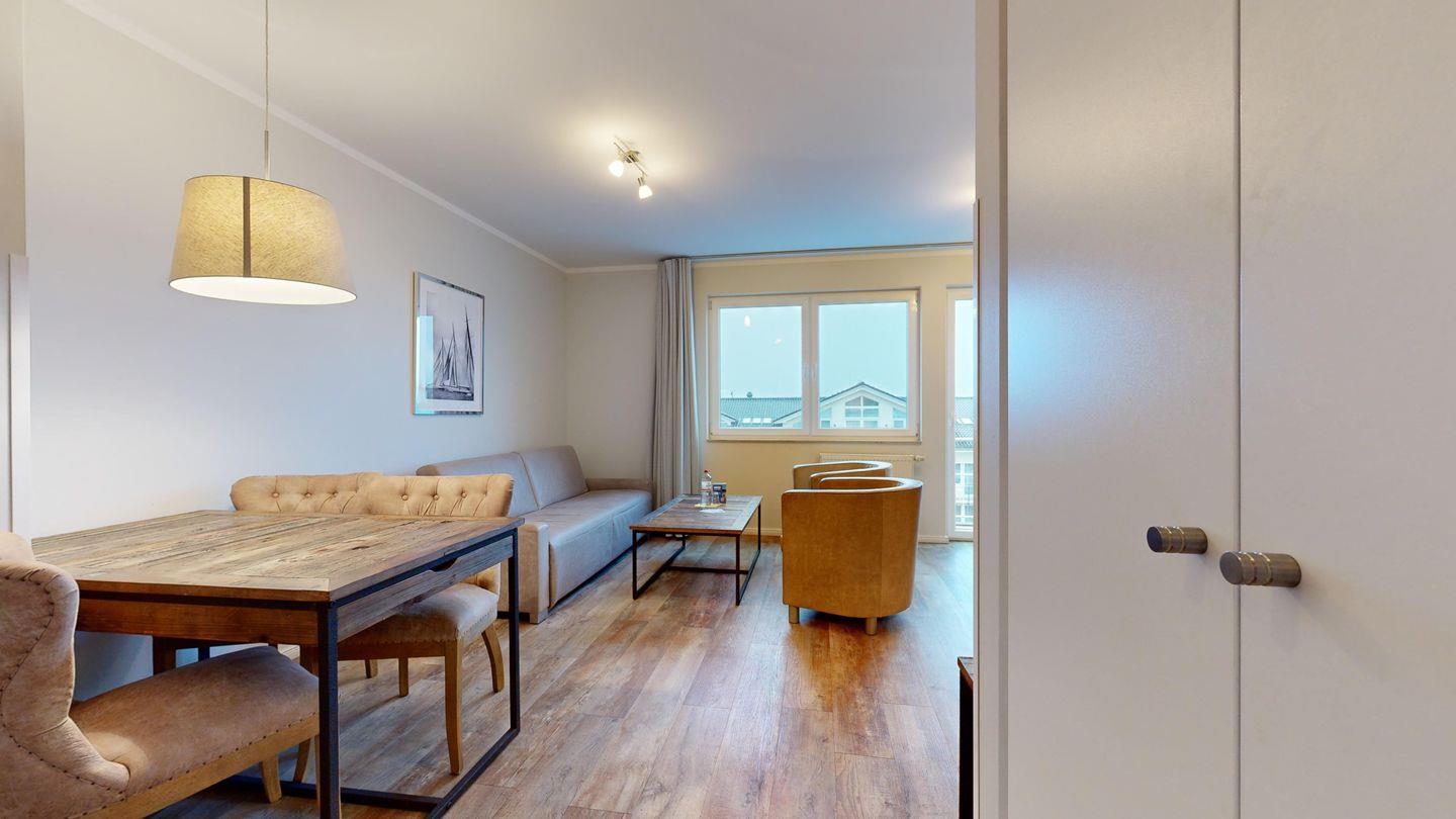 Ferienwohnung mit Balkon für 4 Personen mit hochwertiger Möblierung im 3. OG mit 1 Schlafzimmer (2 Zimmer / 49 m²):