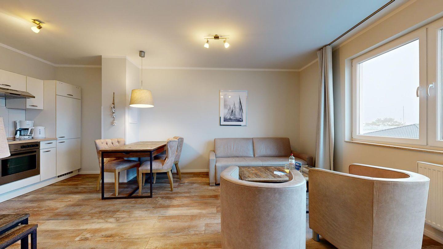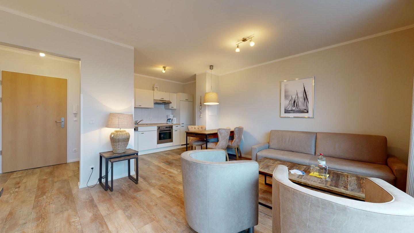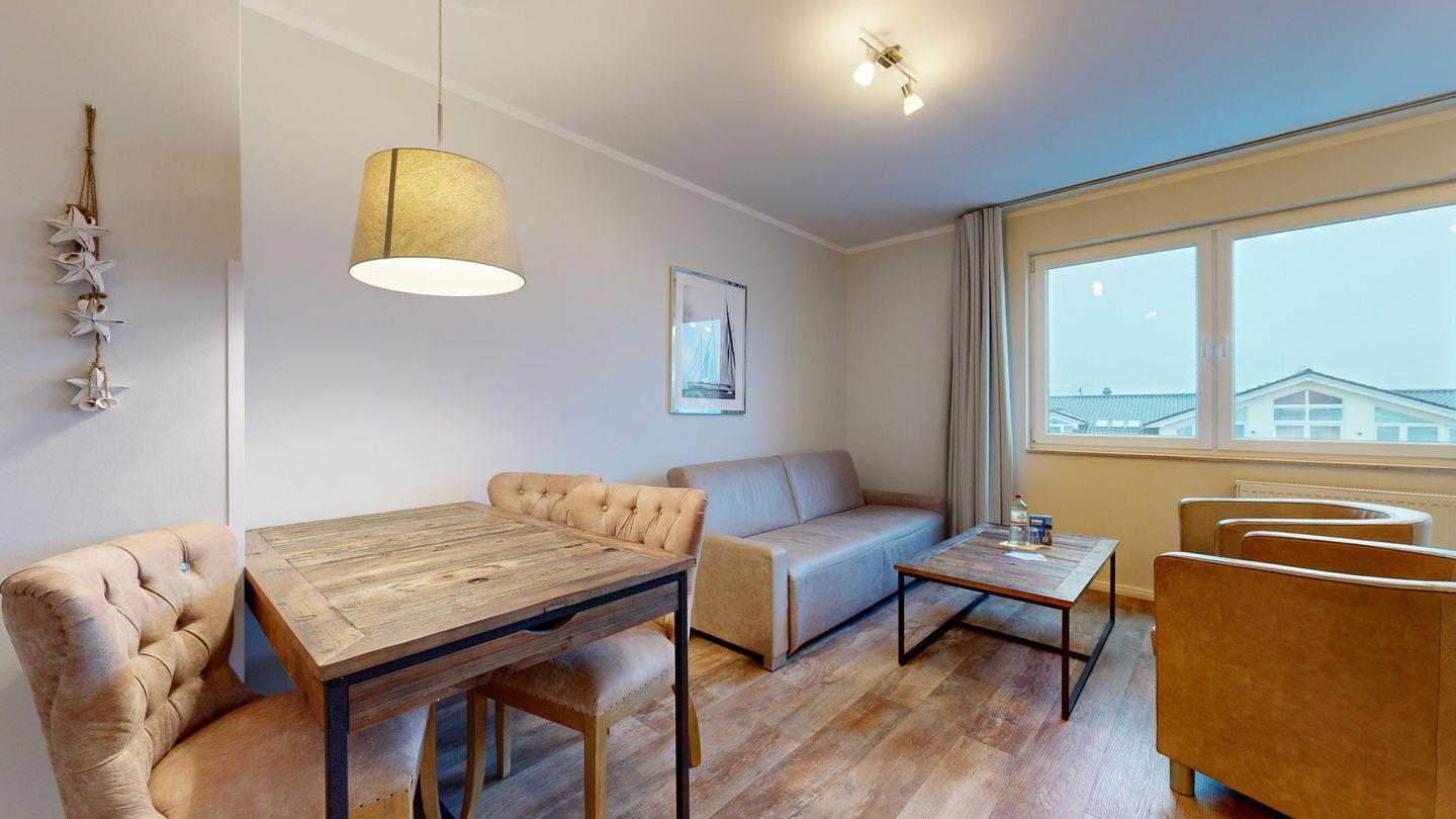 Ferienwohnung mit Balkon für 4 Personen mit hochwertiger Möblierung im 3. OG mit 1 Schlafzimmer (2 Zimmer / 49 m²):