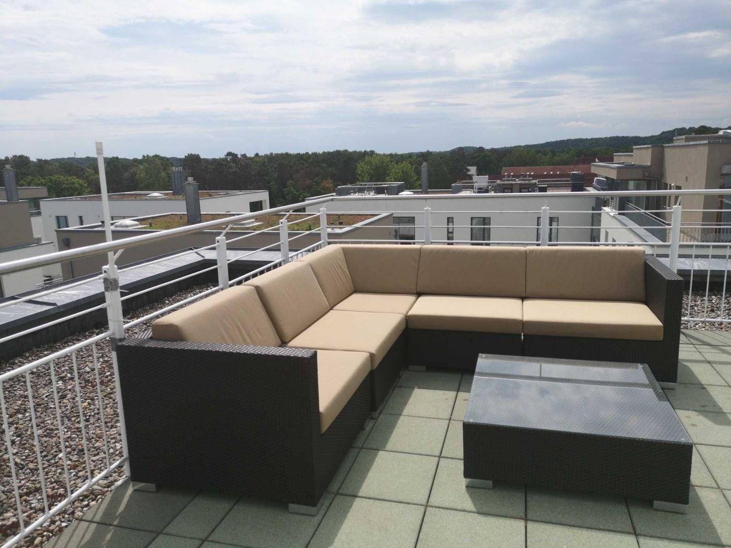 * Möblierte sonnige Dachterrasse (40 m², Südwest + Nordwest-Ausrichtung) mit Ostseeblick