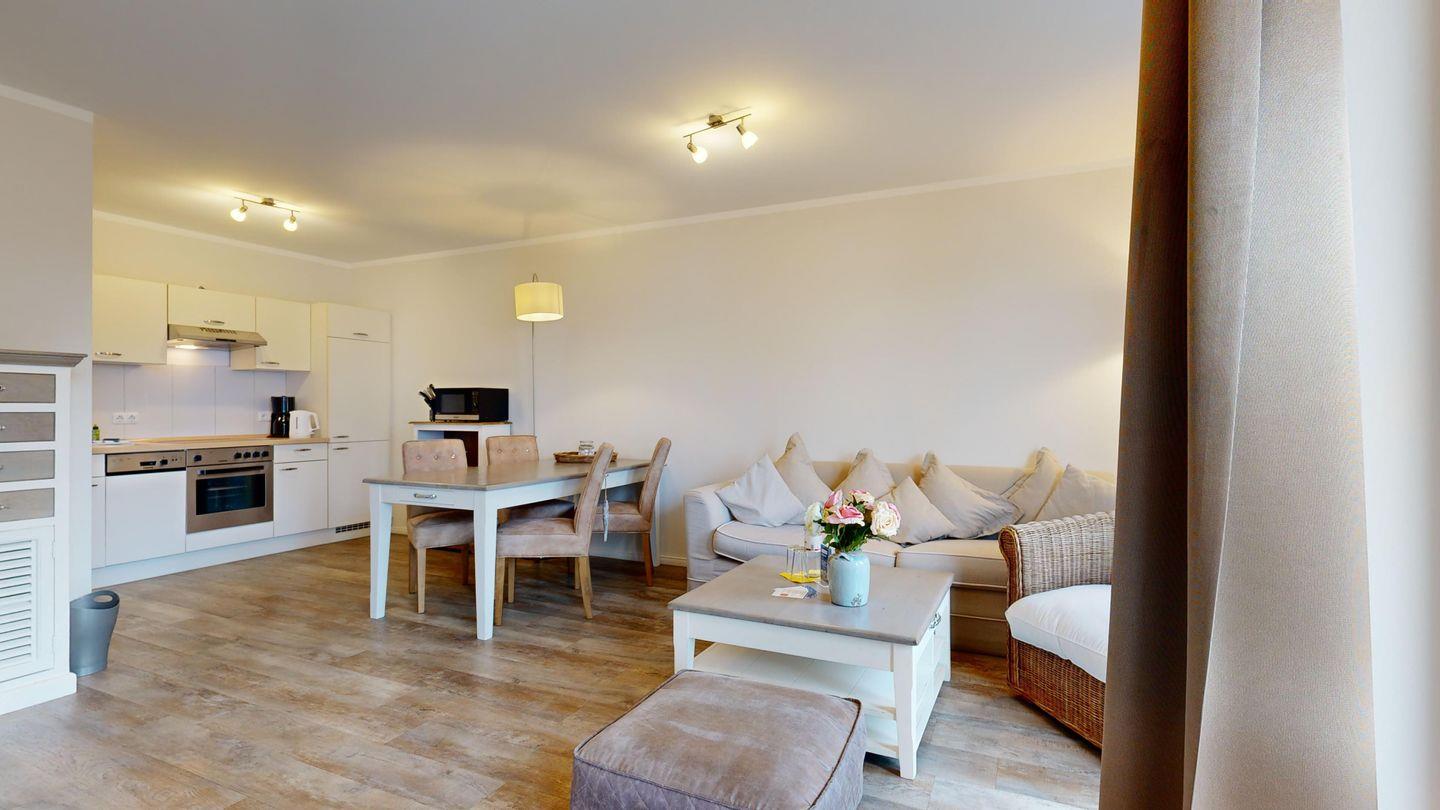 Das Bel Vital in Binz vereint moderne Exklusivität mit einer Traumlage nur wenige Schritte vom Strand – perfekt für alle, die Komfort und Entspannung suchen. Ein Fahrstuhl, Tiefgarage, Sauna und Fitnessraum im Haus sorgen zusätzlich für ein rundum angenehmes Urlaubserlebnis.