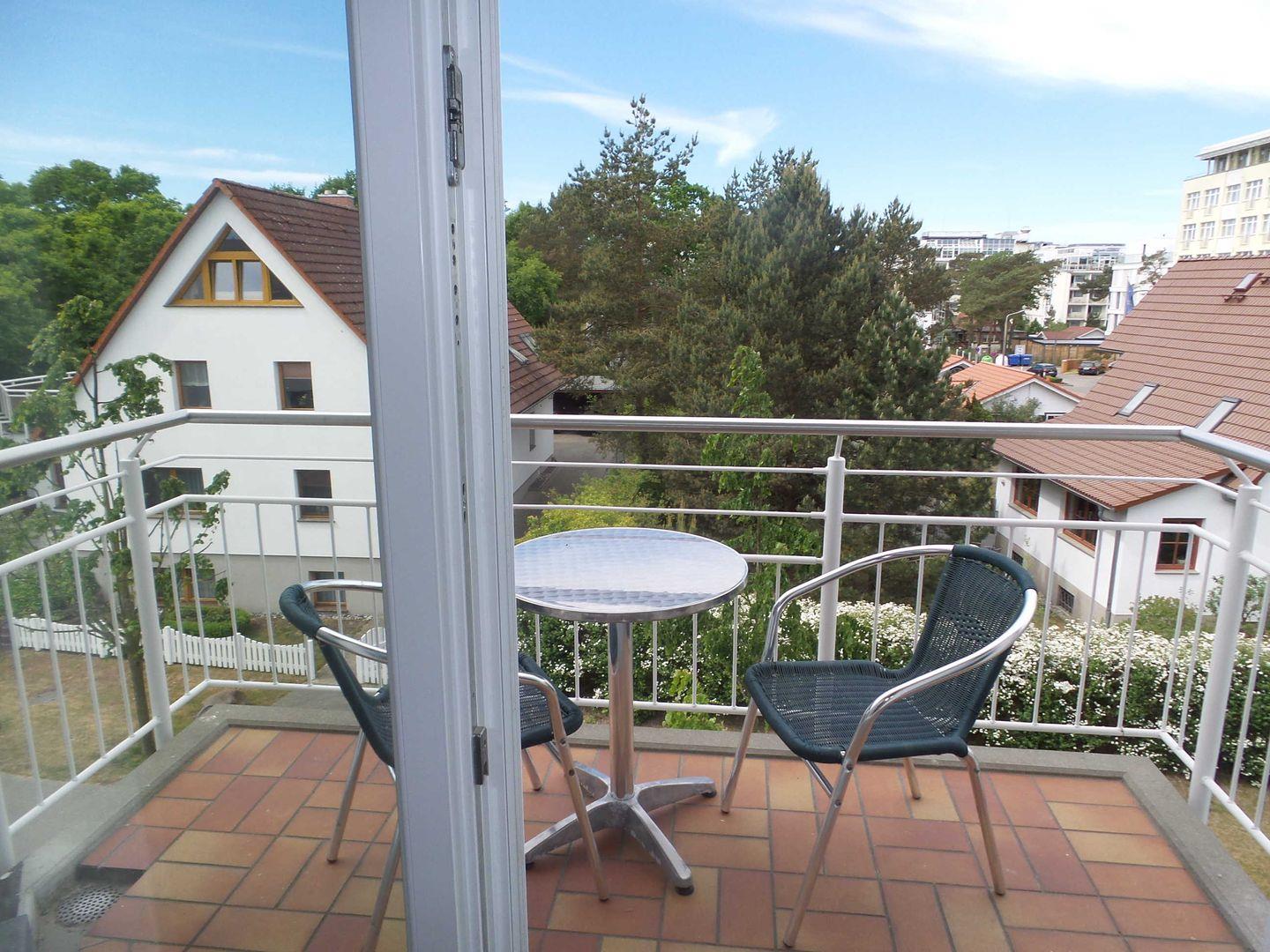* Balkon (Nord-West-Ausrichtung) mit eingeschränkten Ostseeblick und Balkonmöbeln