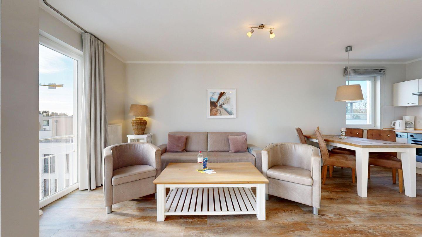 Ferienwohnung mit Balkon für 2-4 Personen mit hochwertiger Möblierung im 3. OG mit 1 Schlafzimmer (2 Zimmer / 55 m²):