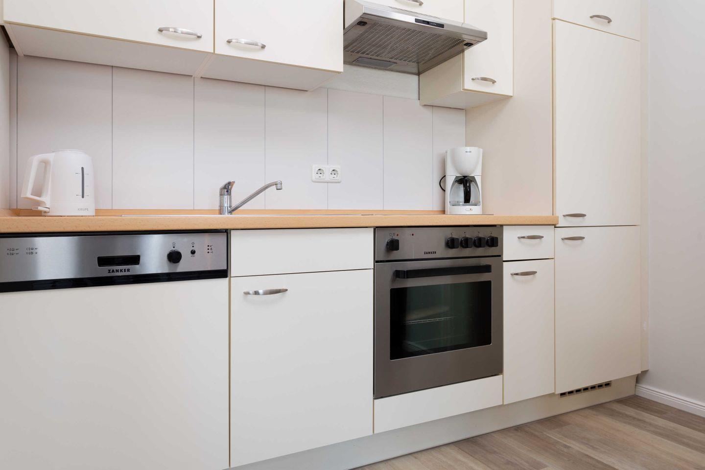 * Küche mit Ceranfeld, Kühlschrank mit Gefrierfach, Backofen, Spülmaschine, Toaster, Wasserkocher, Kaffeemaschine