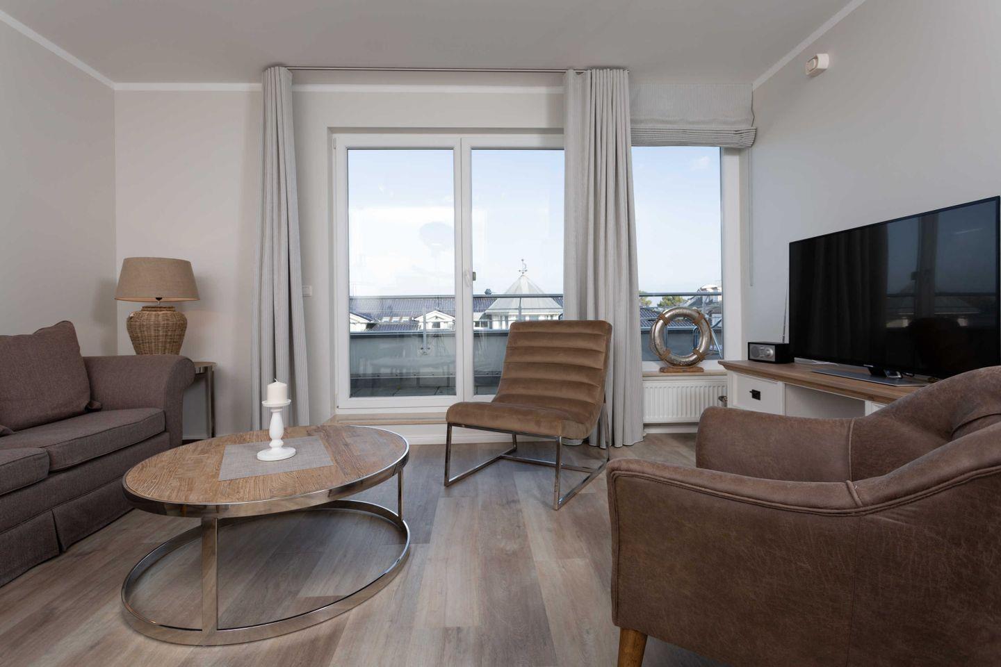 Moderne Ferienwohnung in Binz nahe dem Strand mit Sauna, Fitnessraum und Fahrstuhl für Komfort und Erholung.