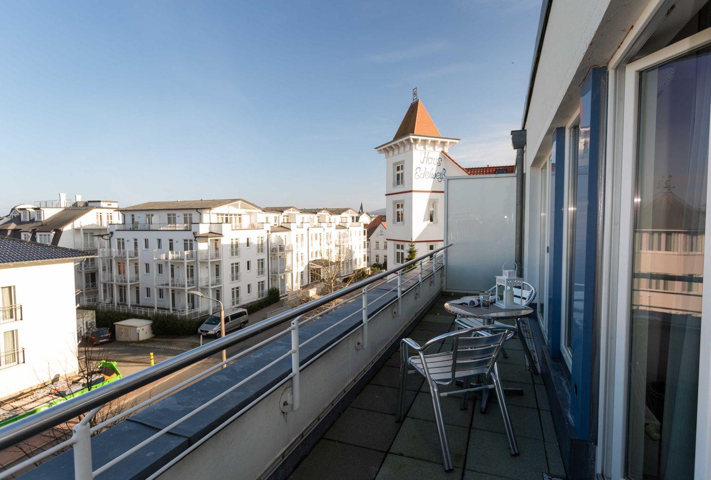 * Balkon (Nordost-Ausrichtung) mit Balkonmöbeln