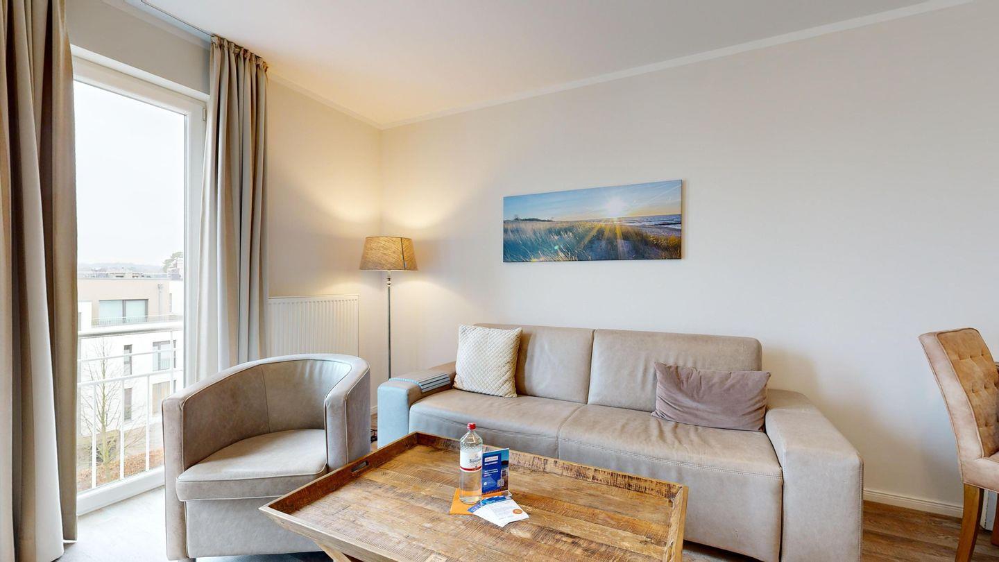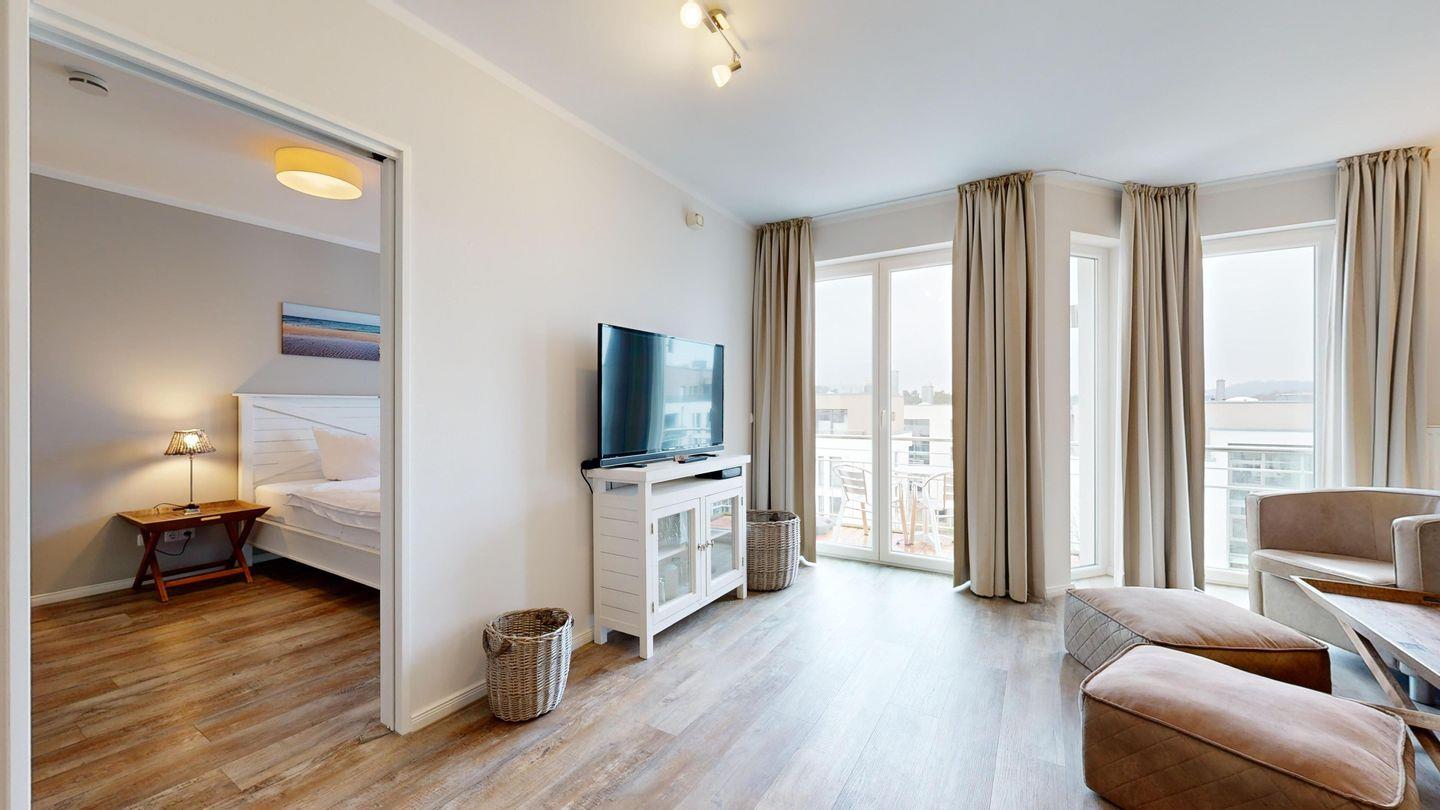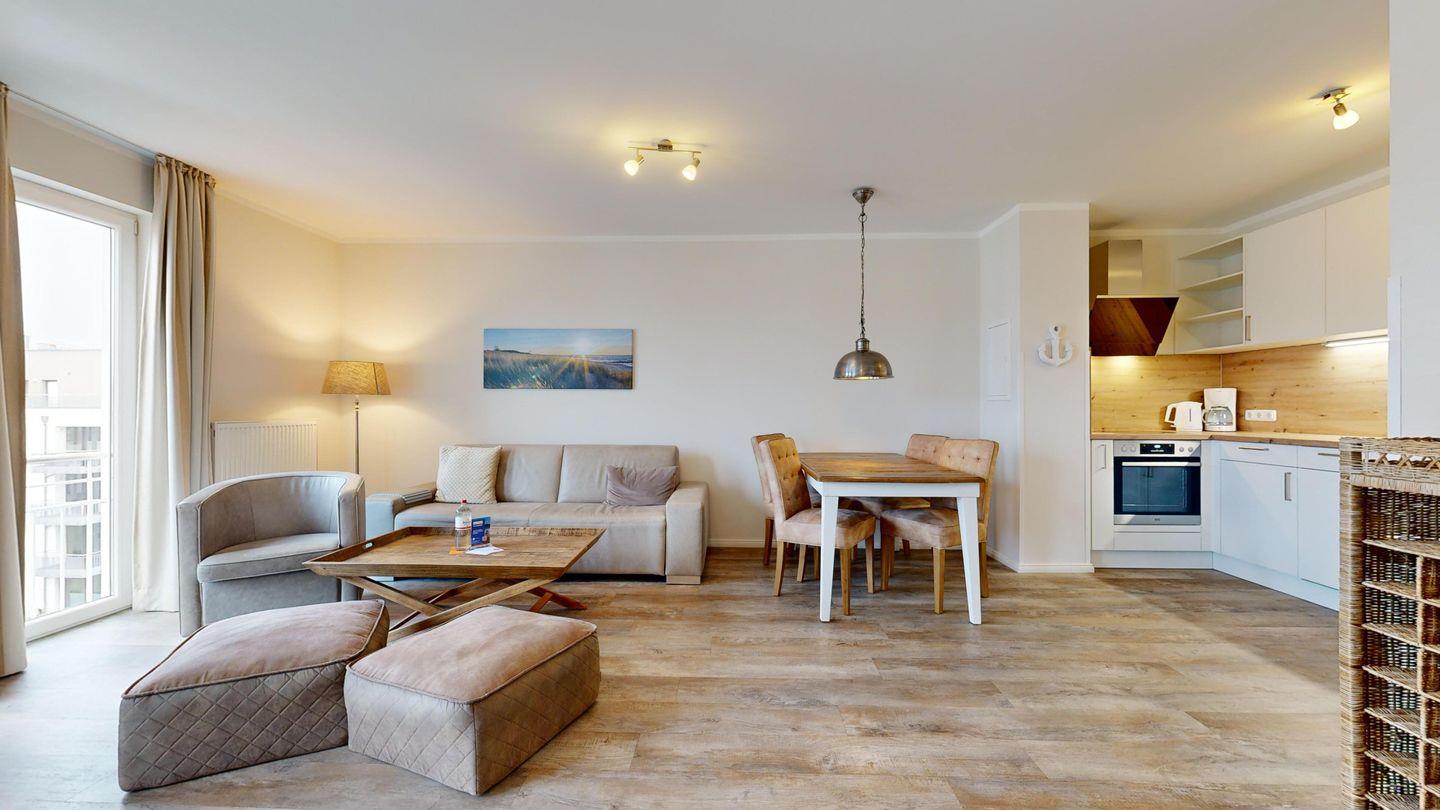 Ferienwohnung mit hochwertiger Möblierung und Balkon für 2-4 Personen im 3. OG mit 1 Schlafzimmer (2 Zimmer / 57 m²):