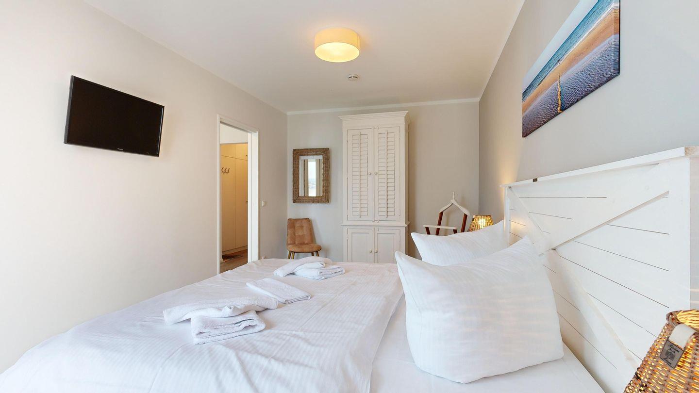 * 1 Schlafzimmer mit einem Doppelbett, Kleiderschrank und TV