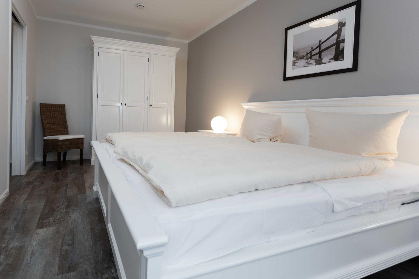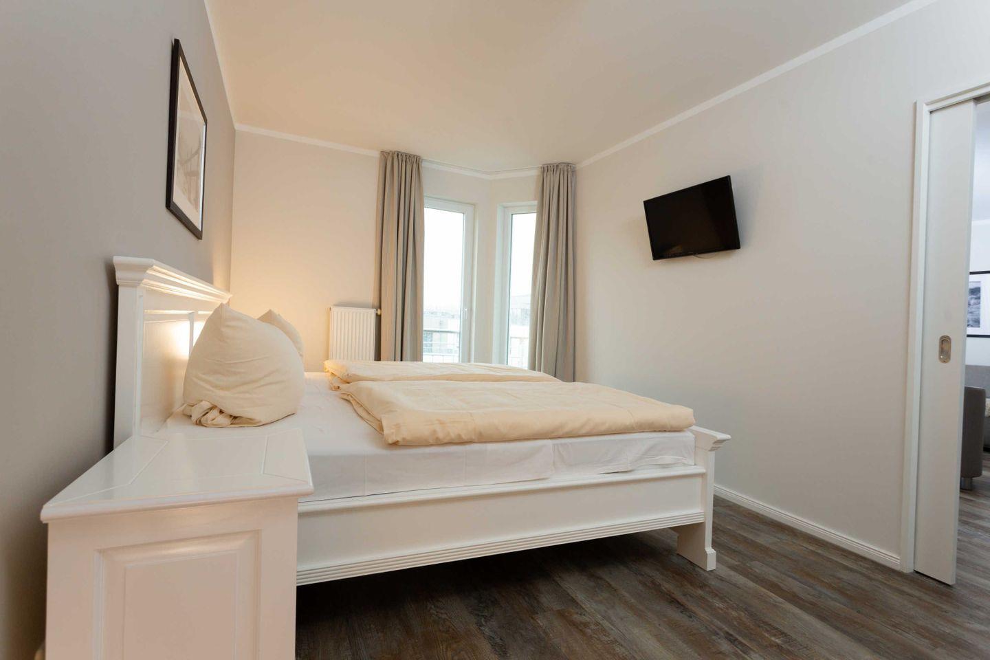 * 1 Schlafzimmer mit einem Doppelbett, Kleiderschrank und TV
