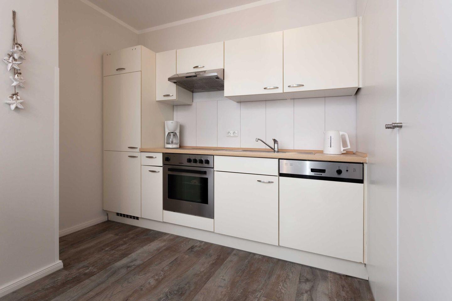 * Küche mit Ceranfeld, Kühlschrank mit Gefrierfach, Backofen, Spülmaschine, Toaster, Wasserkocher, Kaffeemaschine