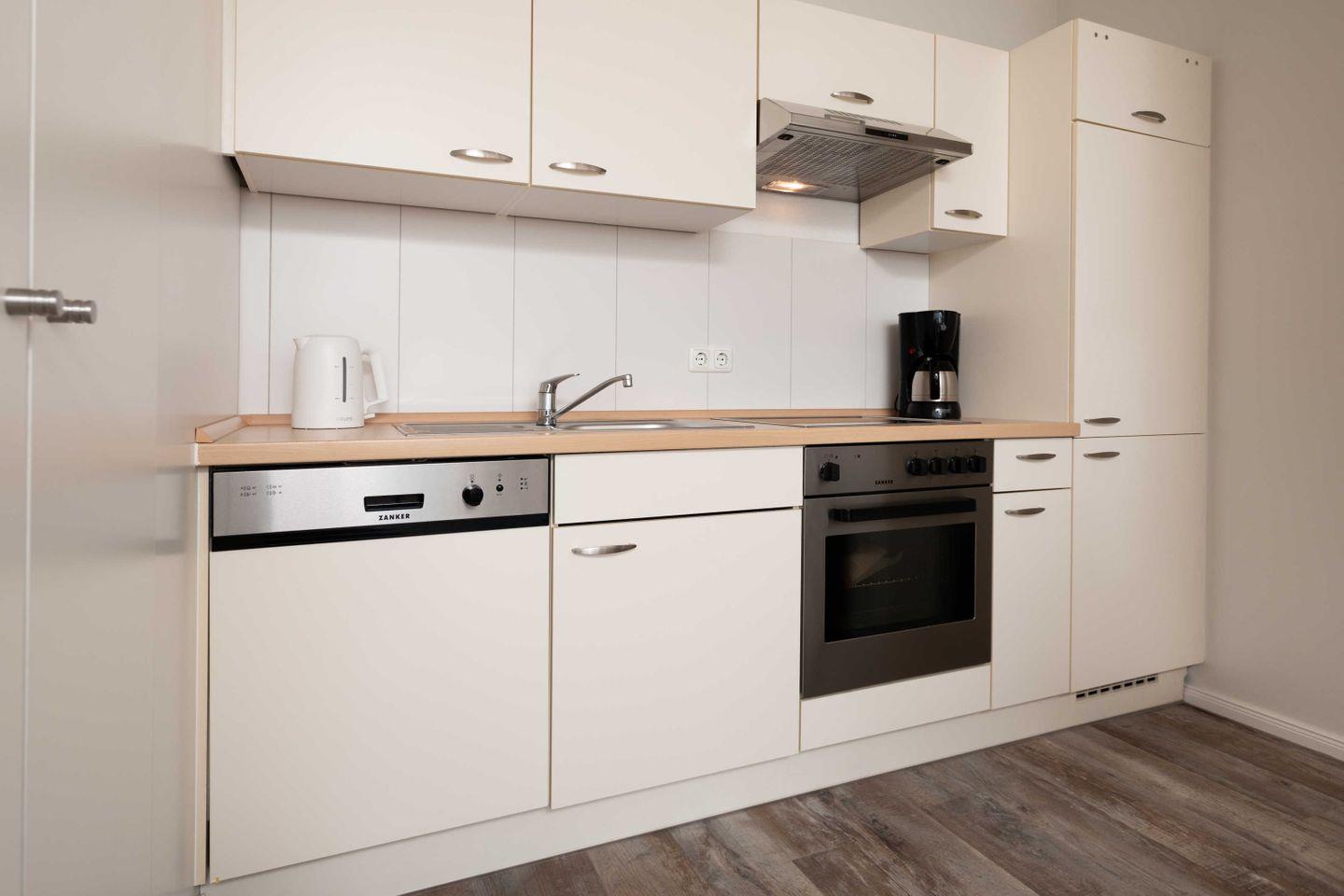 * Küche mit Ceranfeld, Kühlschrank mit Gefrierfach, Backofen, Spülmaschine, Toaster, Wasserkocher, Kaffeemaschine