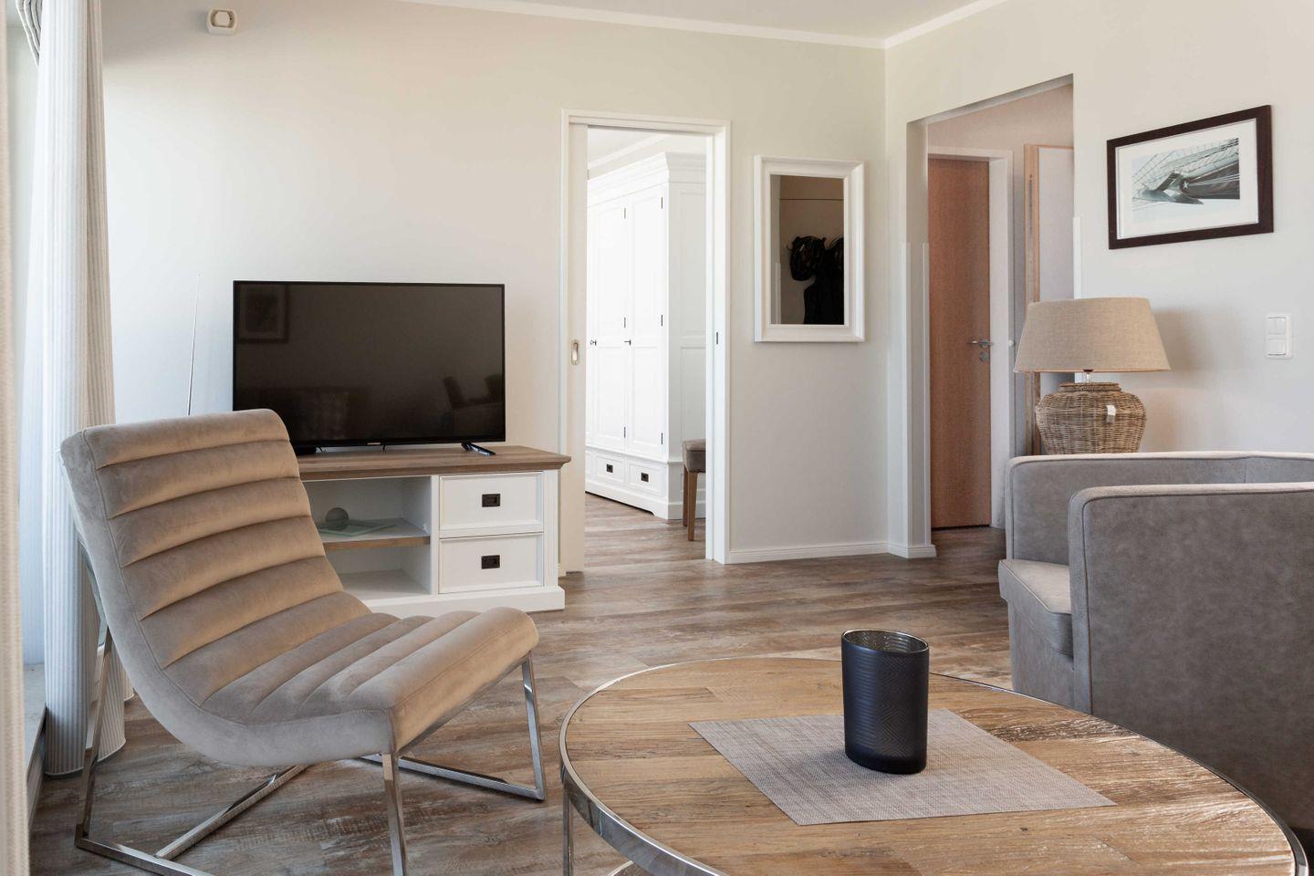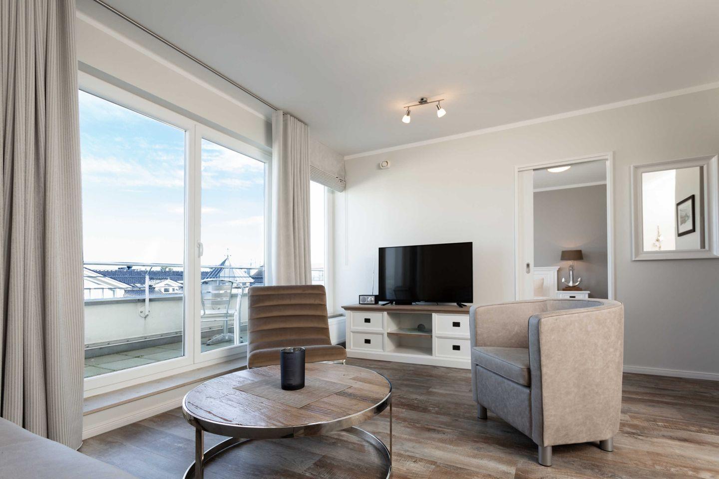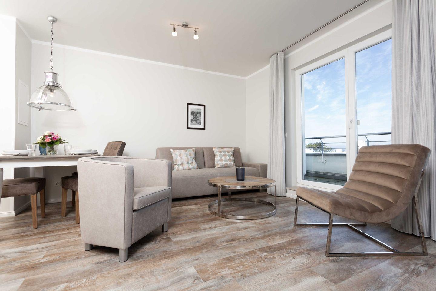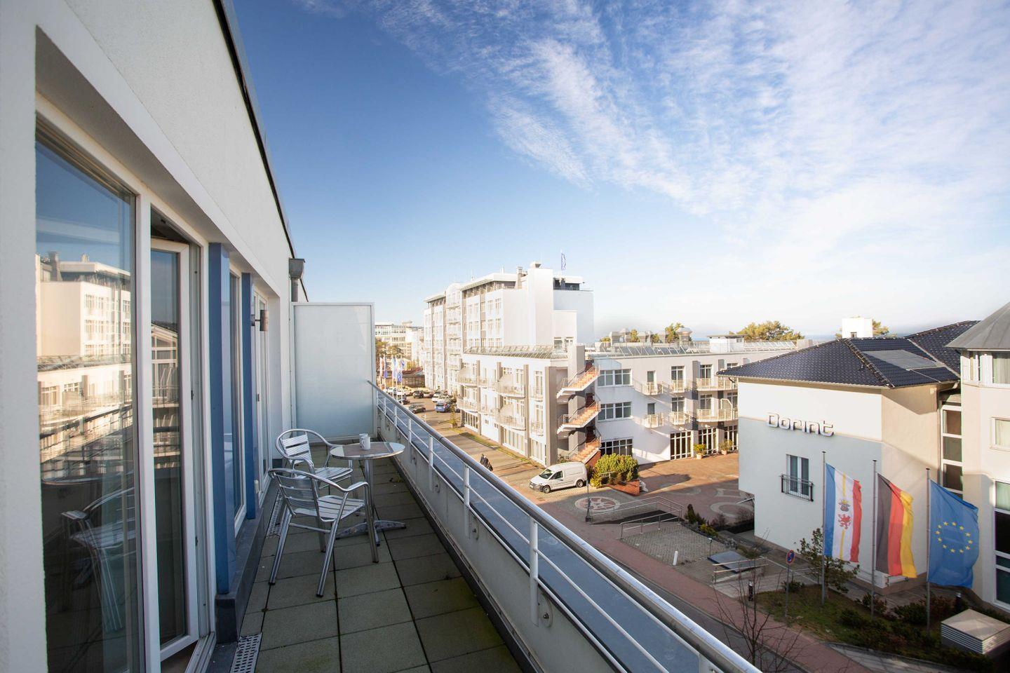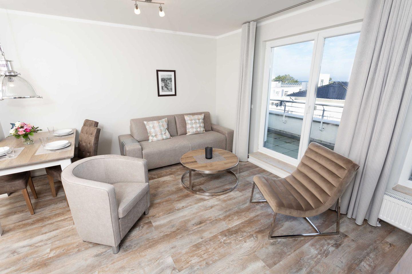 Moderne Ferienwohnung in Binz mit Sauna, Fitnessraum, Fahrstuhl und Strandnähe für entspannte Urlaubstage.